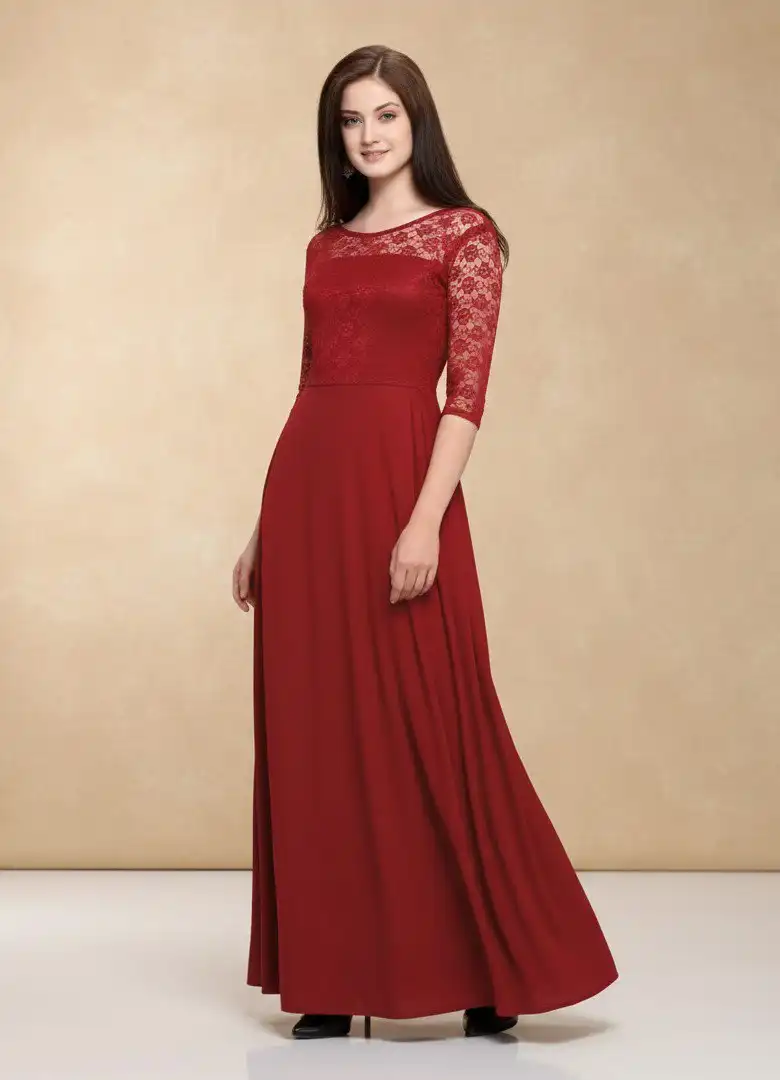 | Gown: | Pattern: Net Fabric: Georgette with crepe inner Length: Regular | Neck : Round neck Sleeve Length: 3/4 sleeve Stitch: full stitching |