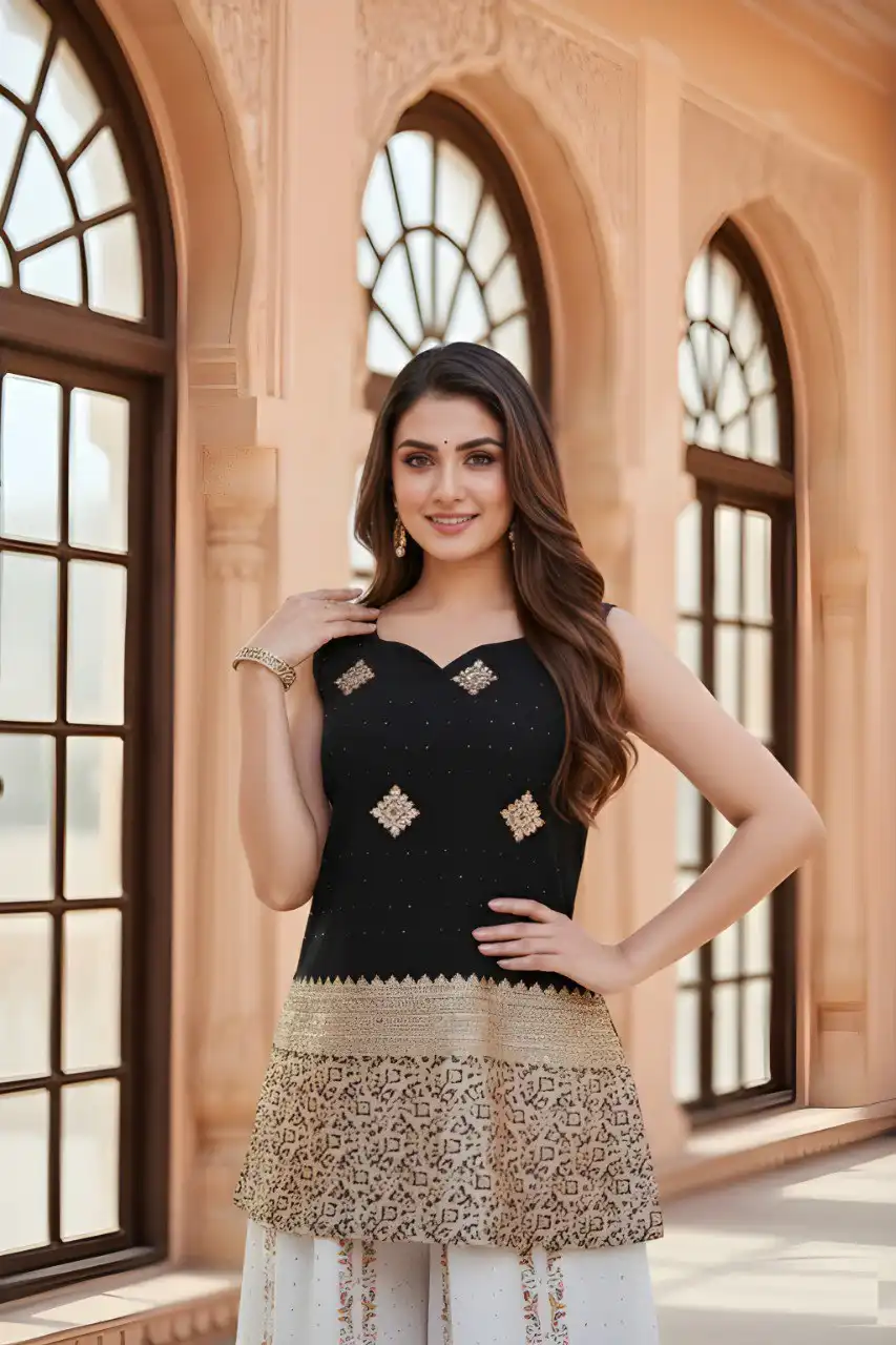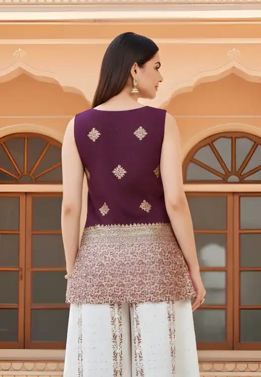 | Top: | Banarasi silk, Pattern: Zari Work, Length: Regular, Neck: Sweetheart Neck, Sleeve Length: sleeveless, Stitch: full stitching, Bust : S(36), M(38), L(40), XL(42), Length : S(28),M(28), L(29), XL(30) |