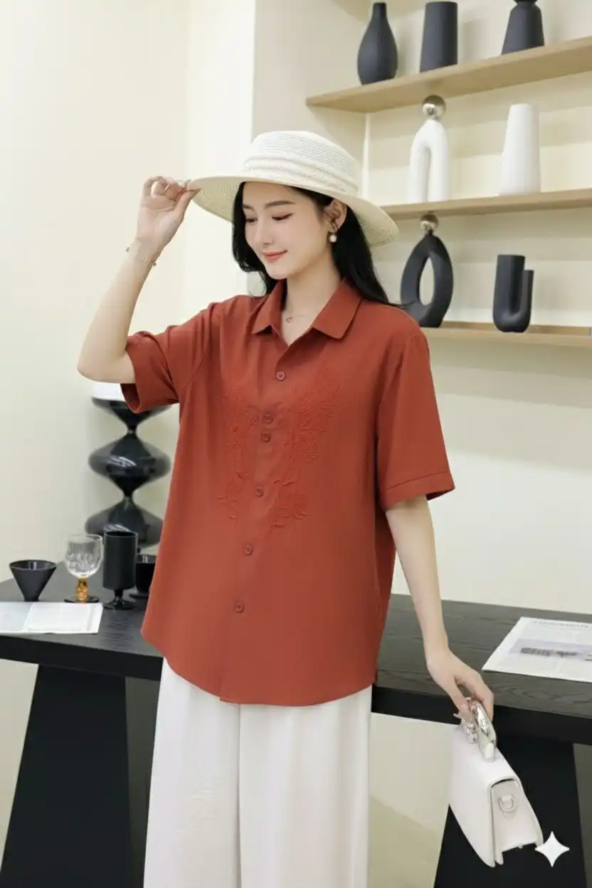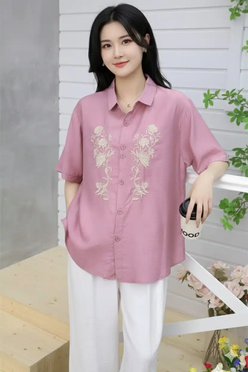 | Top: | Cotton | Pattern: Embroidery | Length: Regular | Neck: Collor Neck | Sleeve Length: 3/4 Sleeve | Bust : L(44), 2XL(46) | Length: L(27), 2XL(29) |