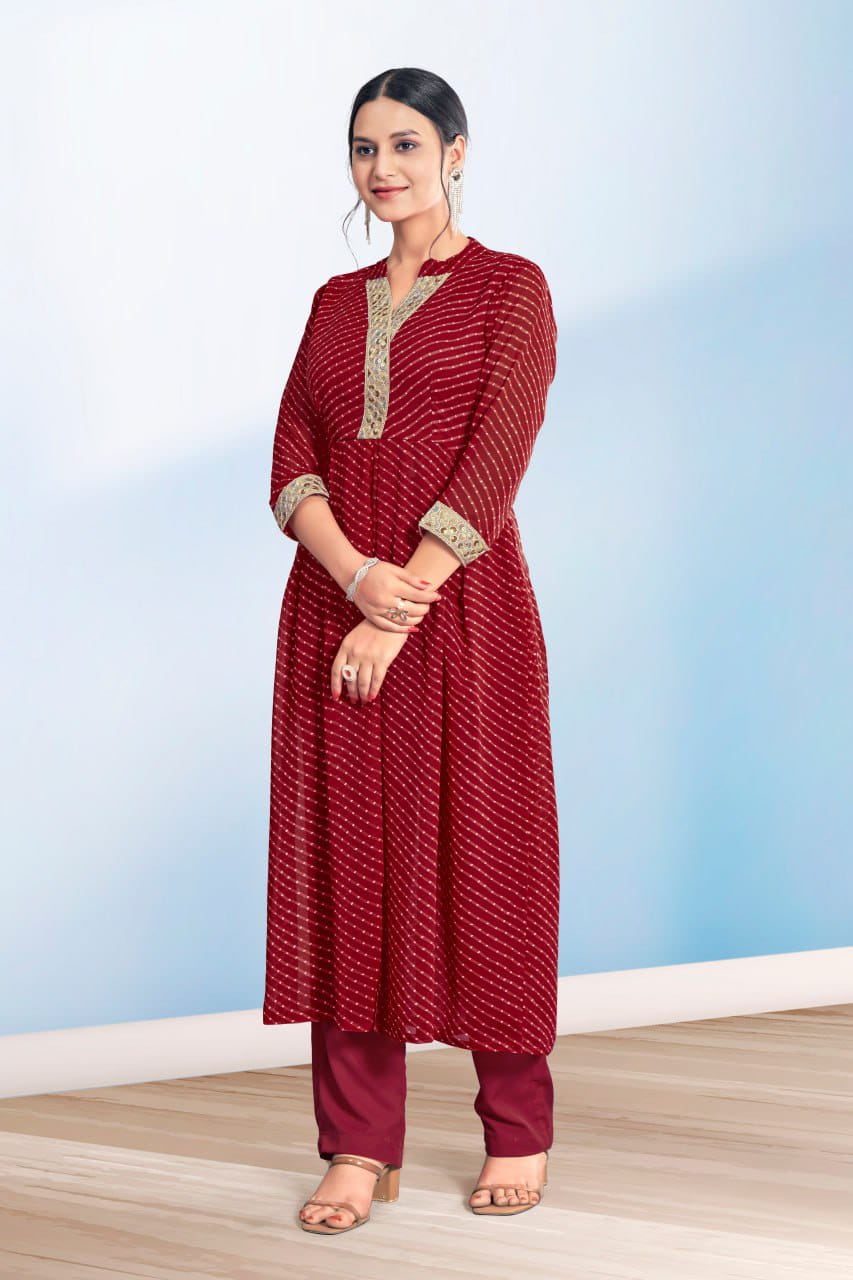 Catalog: | Shiv Vol 18 Georgette Leheriya Round Kurti With Pant New Collection |