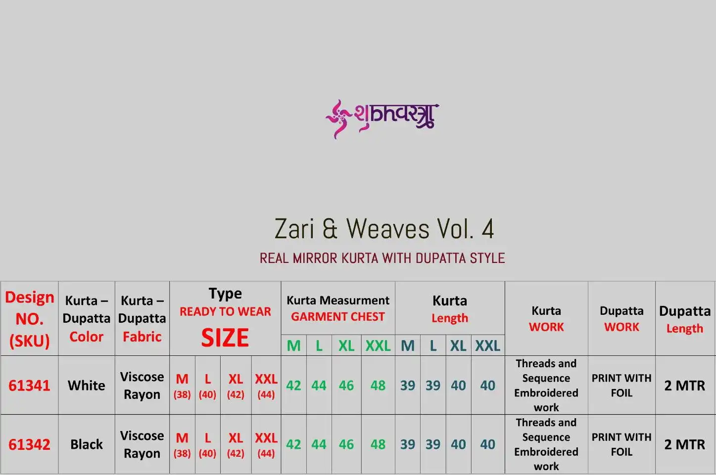 Catalog: | Shubhvastra Zari Weaving Vol 4 Viscose Kurta With Dupatta |
