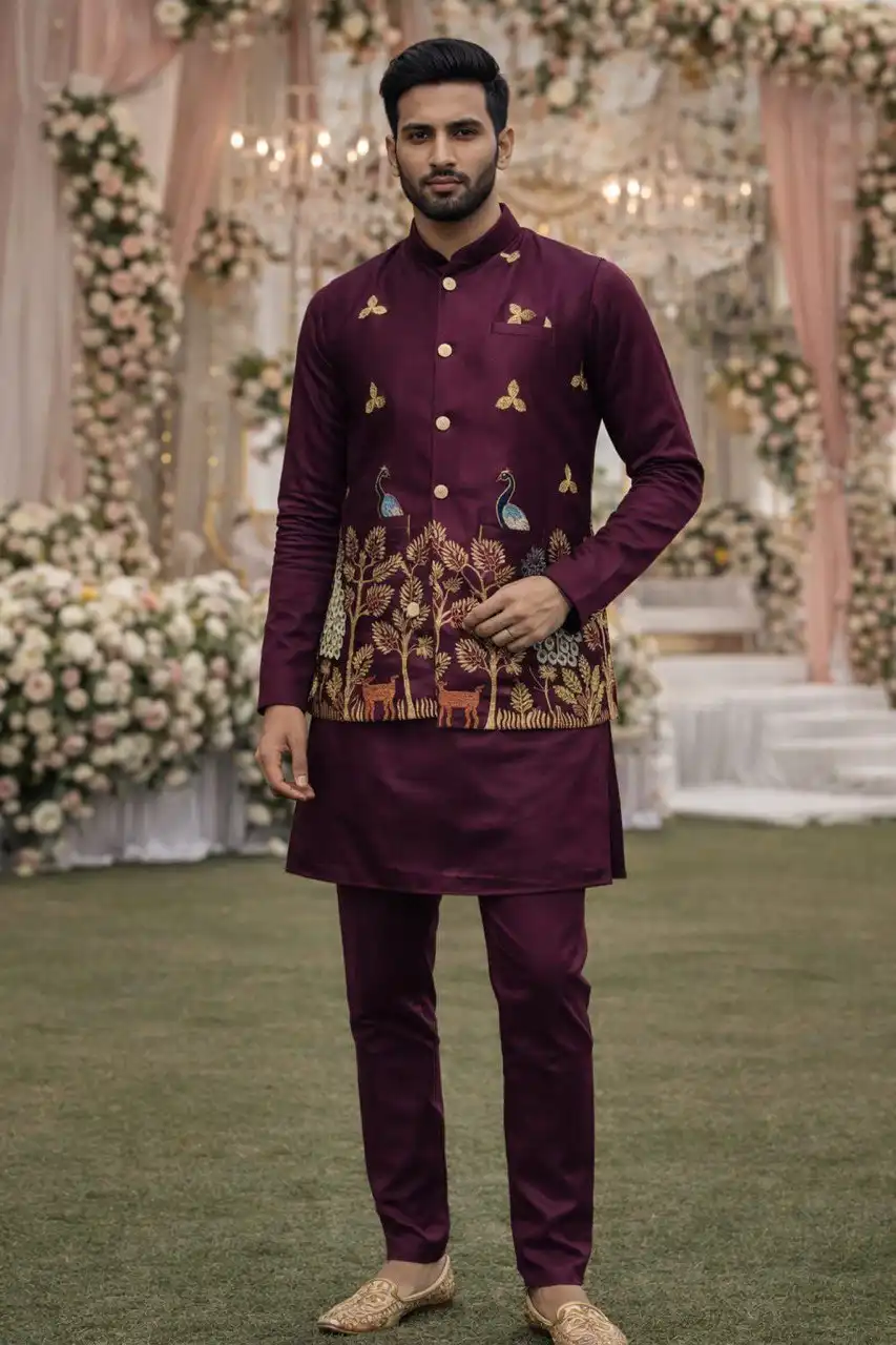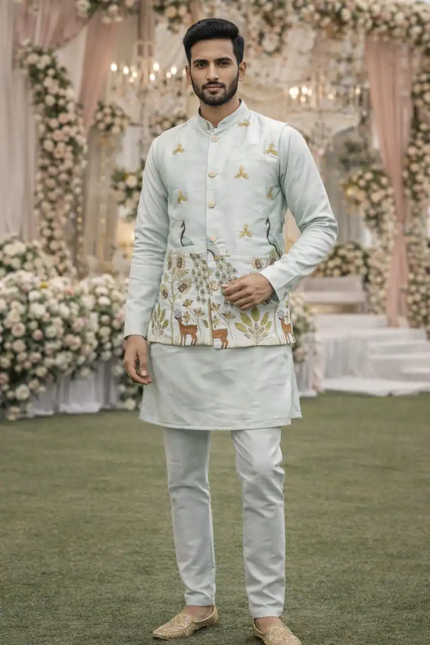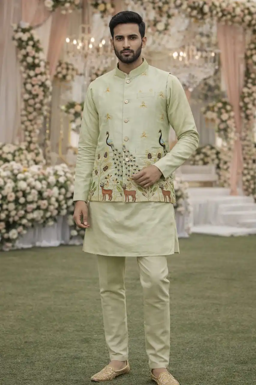 Shyam Vol 62 Malai Satin Designer Traditional Men’s Kurta Koti Set