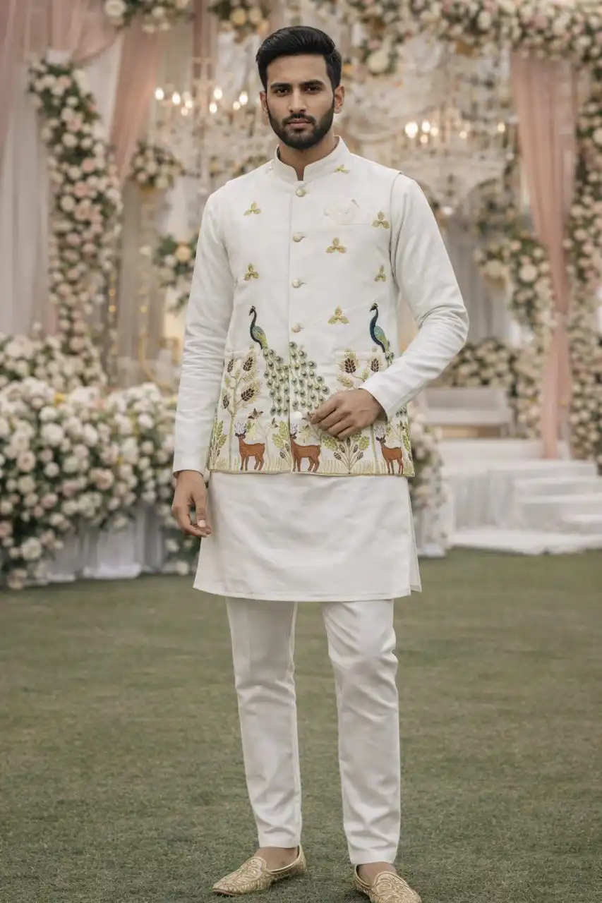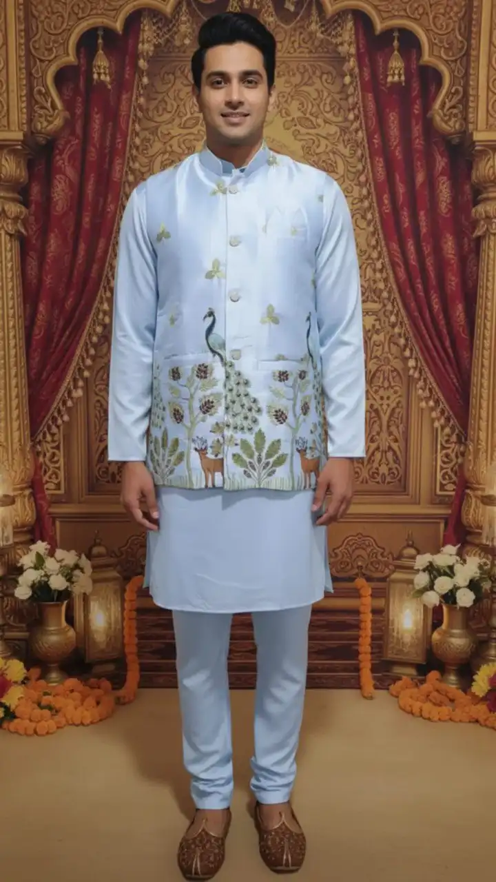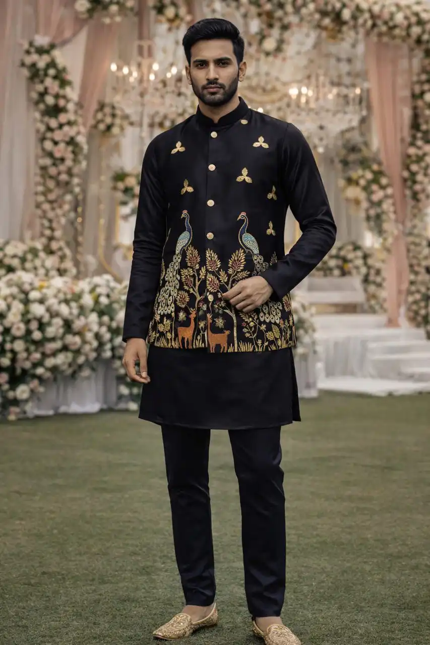 Shyam Vol 62 Malai Satin Designer Traditional Men’s Kurta Koti Set