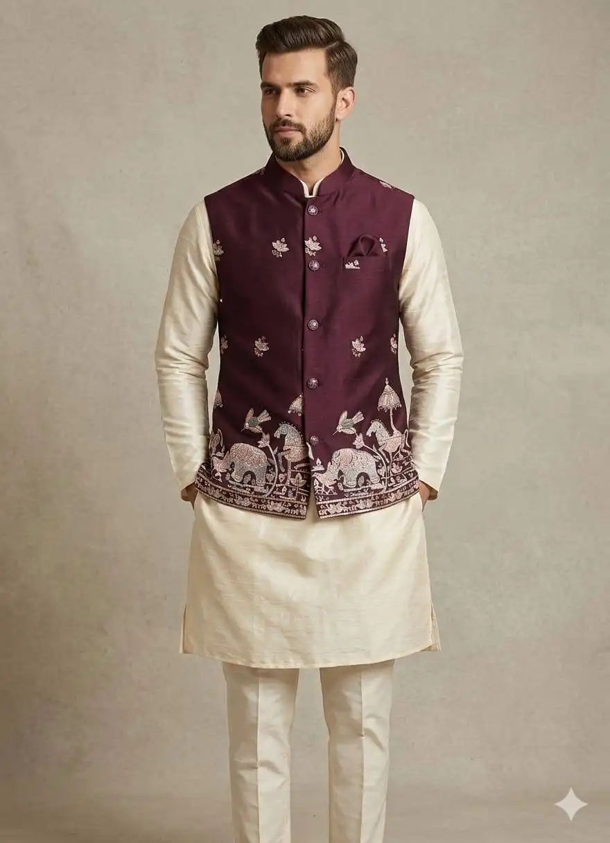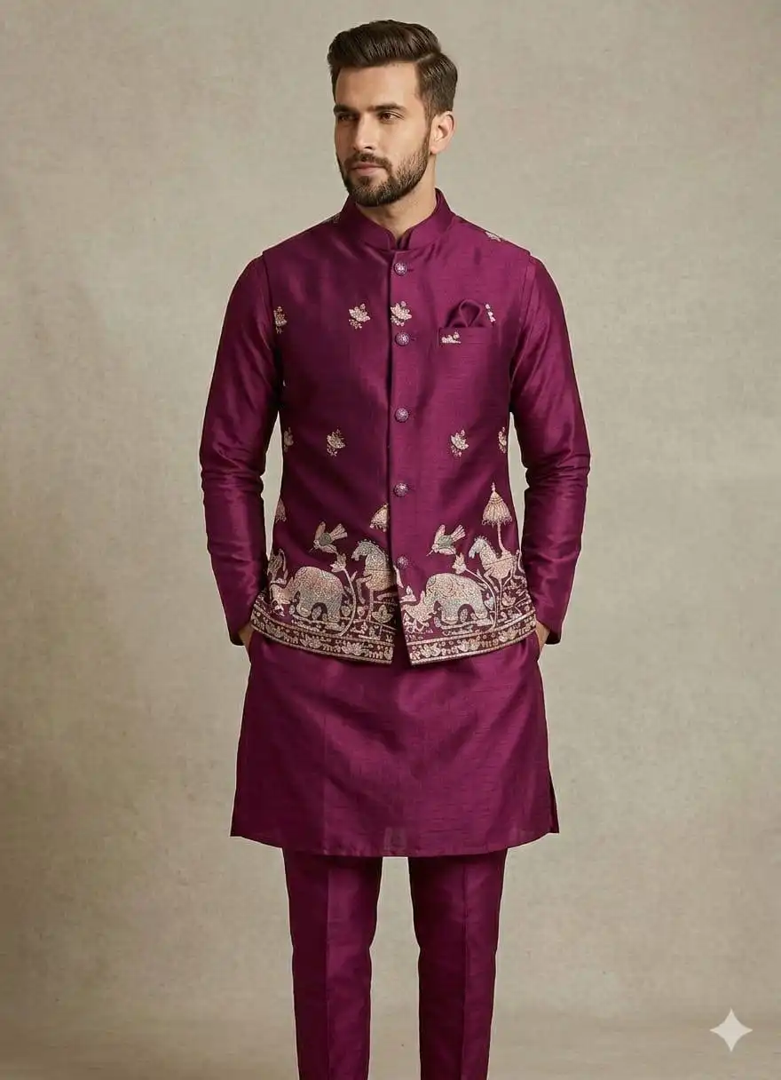 Shyam Vol 89 Wedding Kurta Pajama With Embroidery Koti