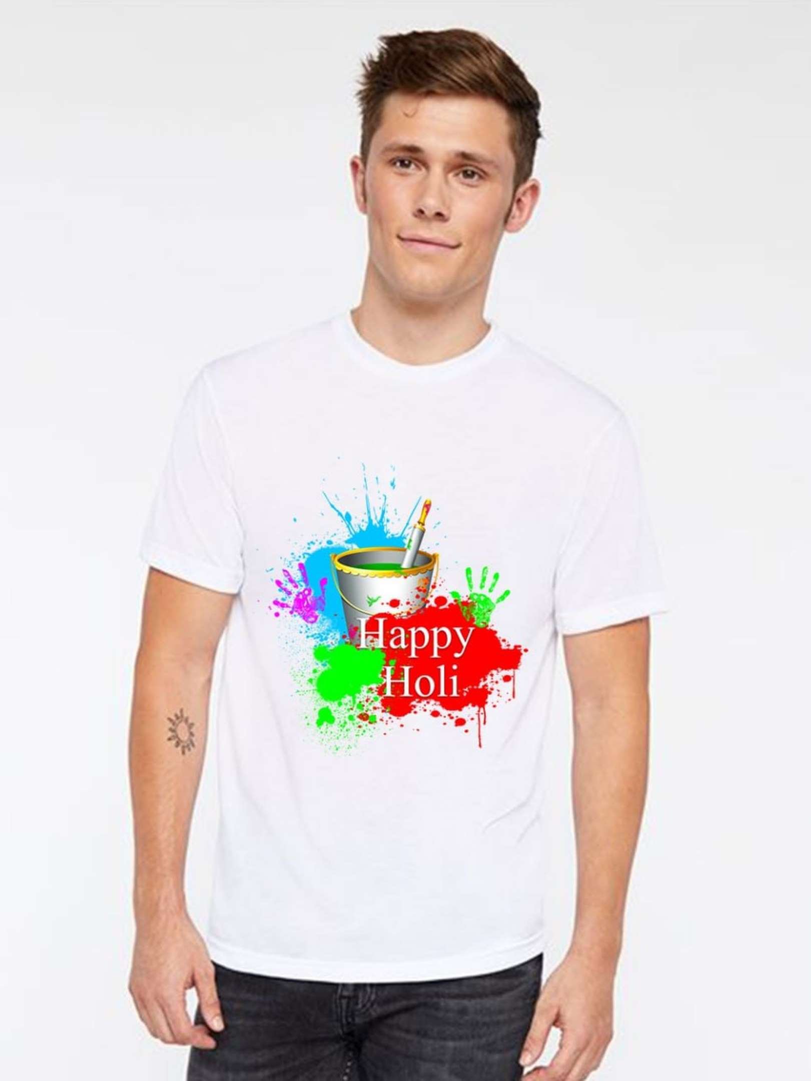Sumshy Soft Lycra Polyester Holi Print Mens Tshirt