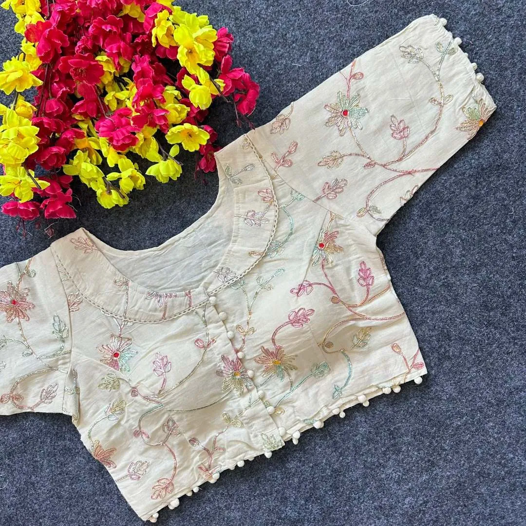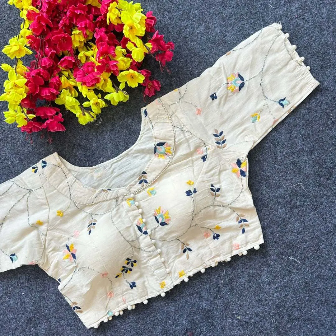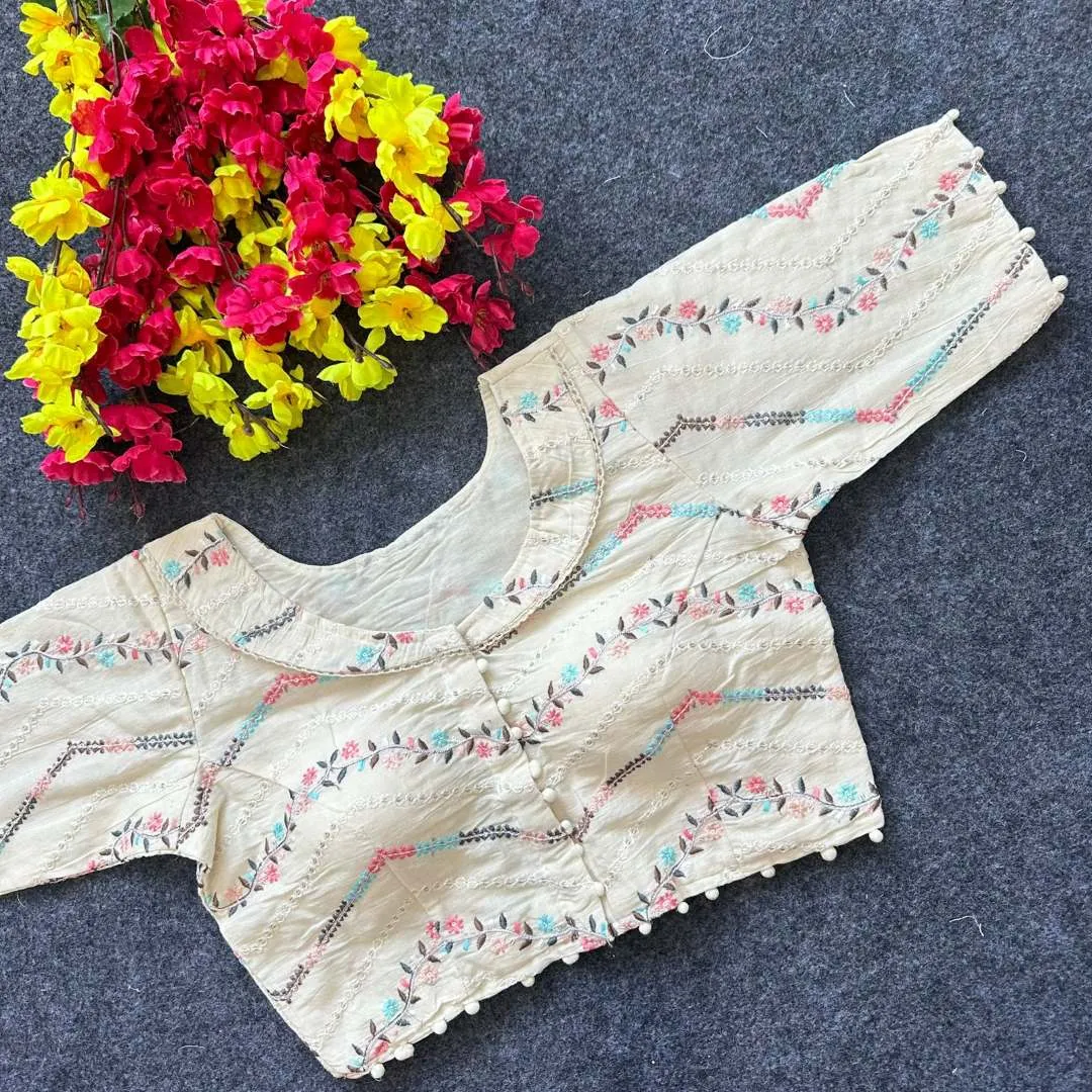 Blouse: Diable Camric Cotton ,Thread Sequence And Embroidery Work Free Size 38 to Alter 40″