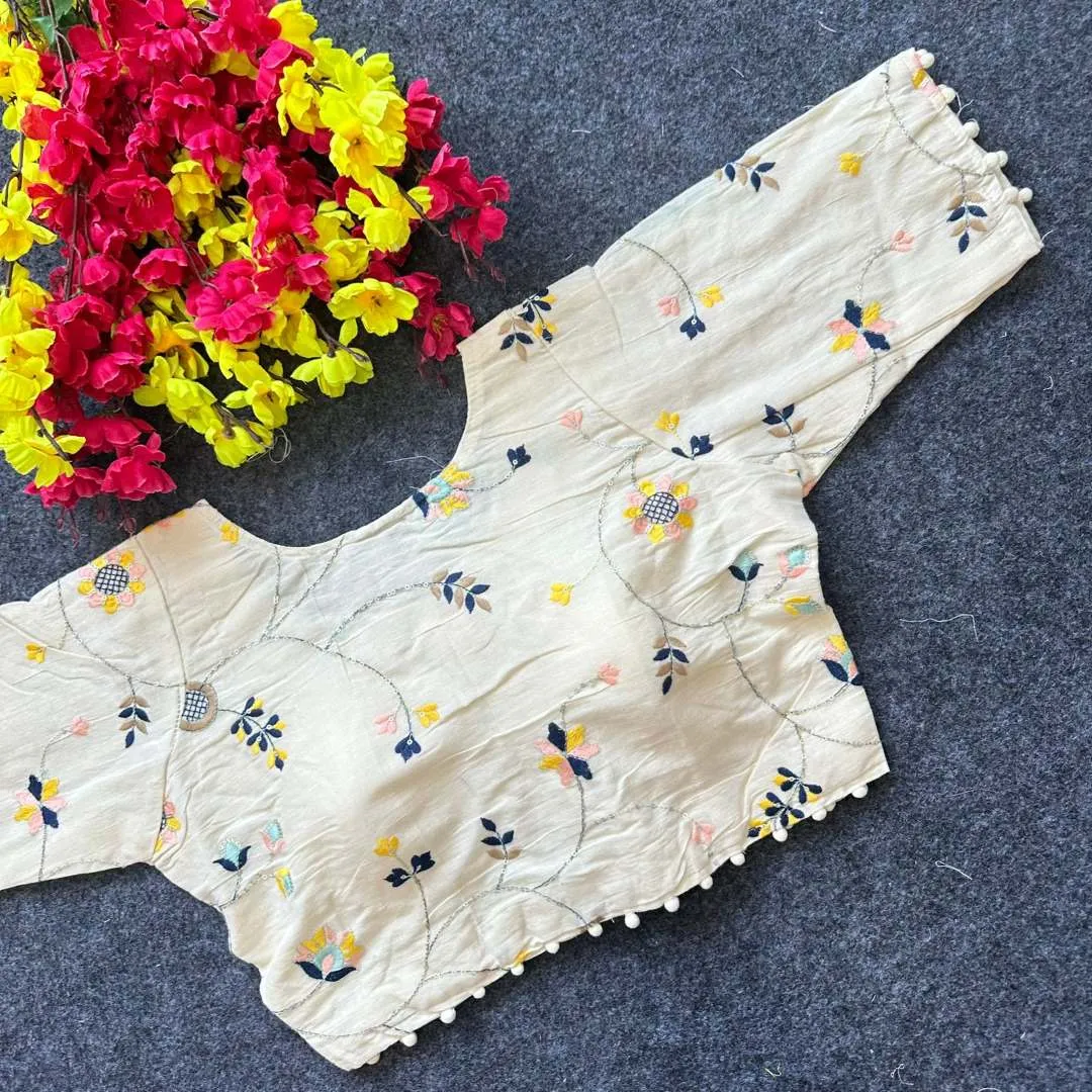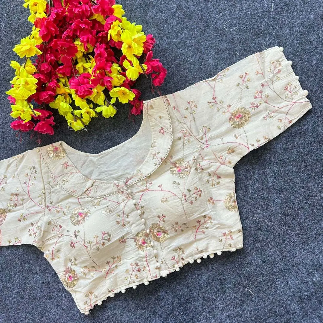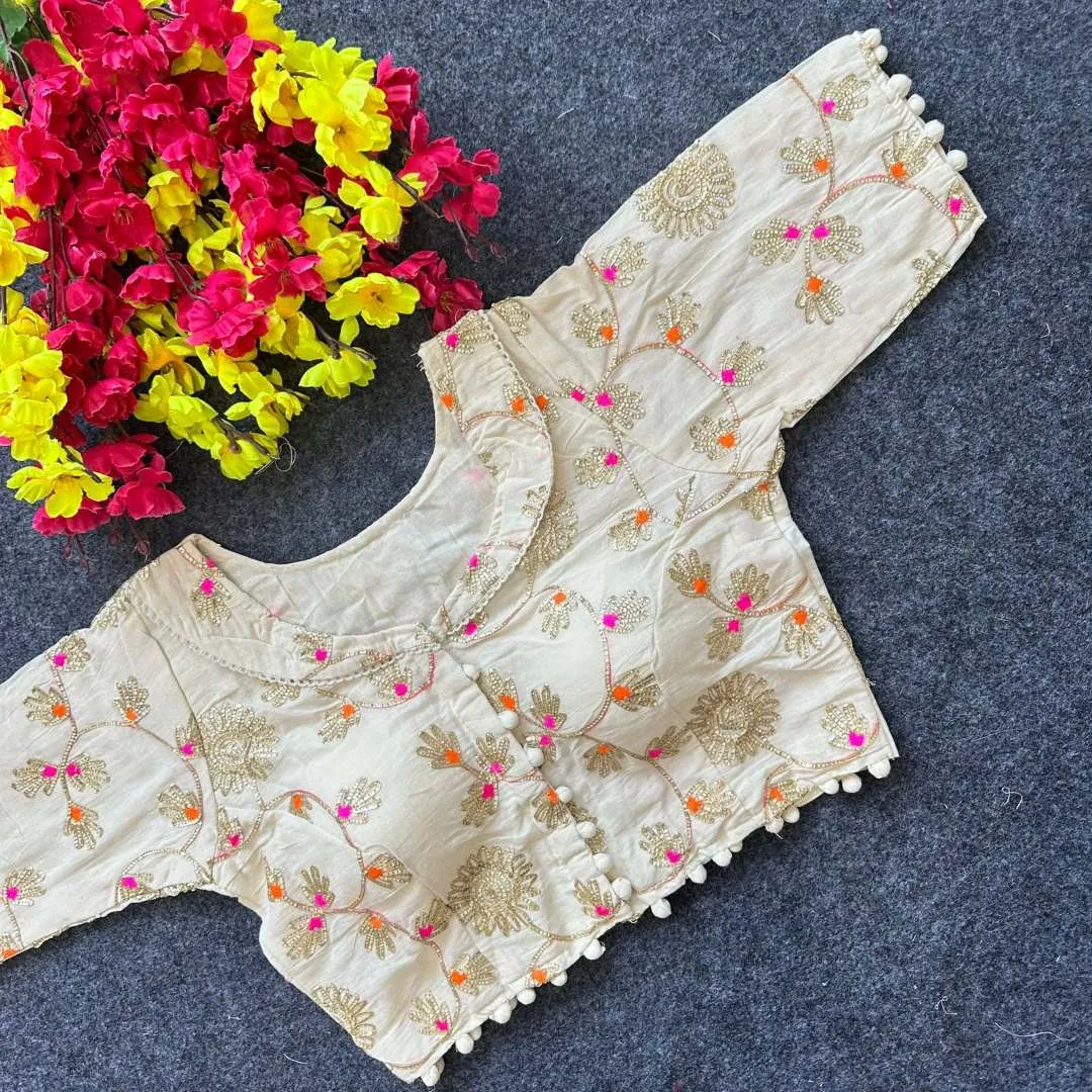 Blouse: Diable Camric Cotton ,Thread Sequence And Embroidery Work Free Size 38 to Alter 40″