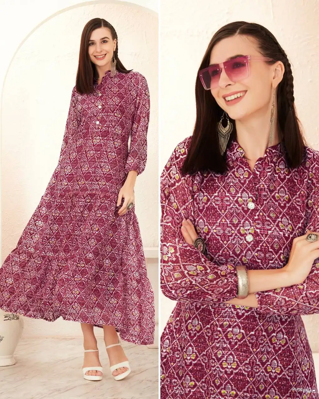 | Kurti: | Heavy Georgette print + inner crepe Length:52” |