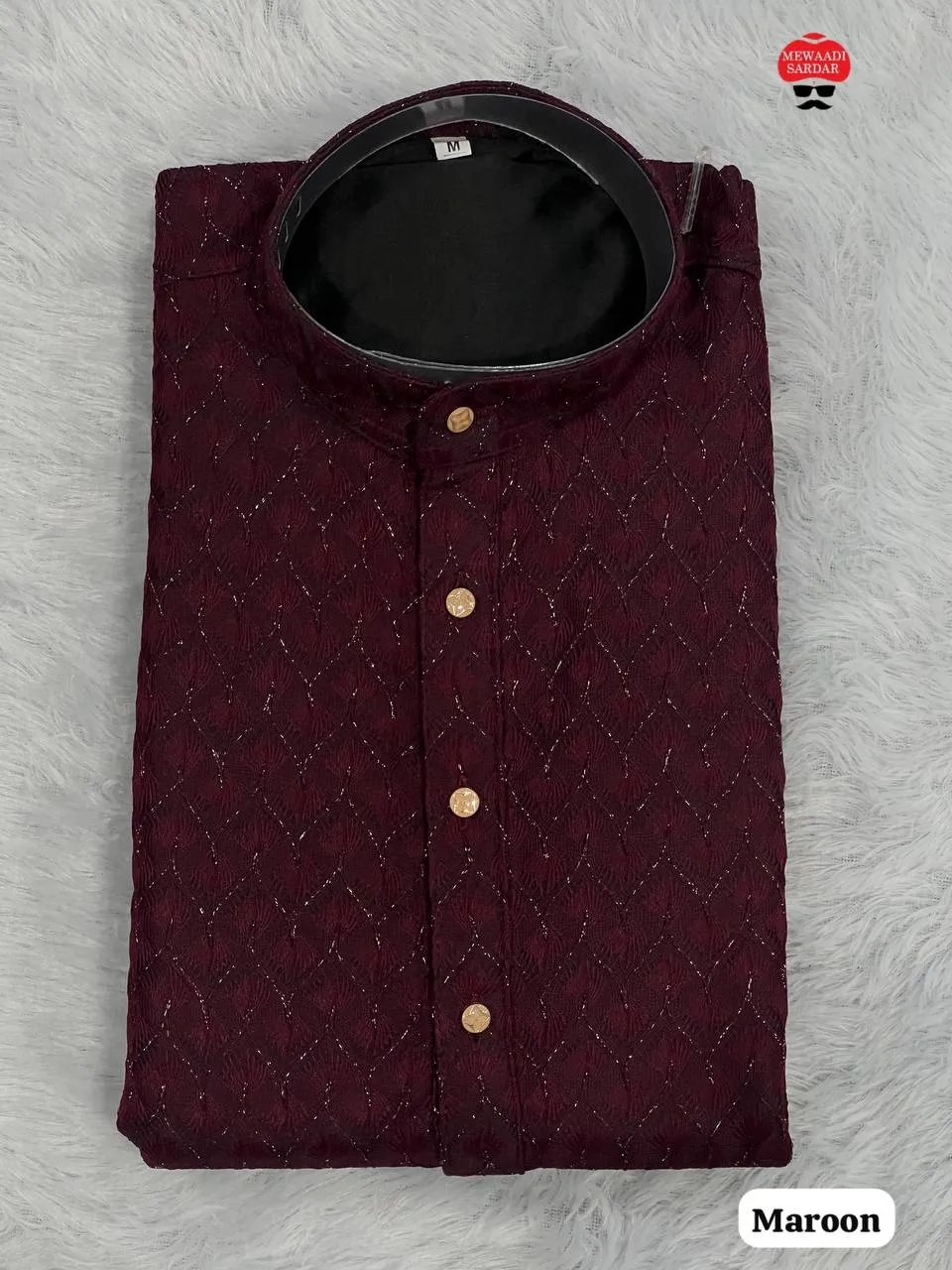 | Kurta | Silk, All Over Work, With fusing, Size Chart Available |