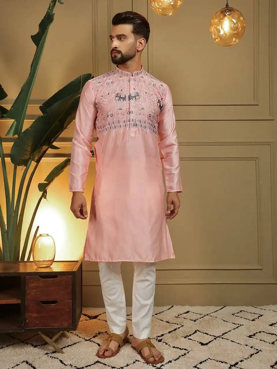 SS2016 Vol 03 Silk Embroidery Sequins Mens Kurta Pajama Wholesale Surat Online