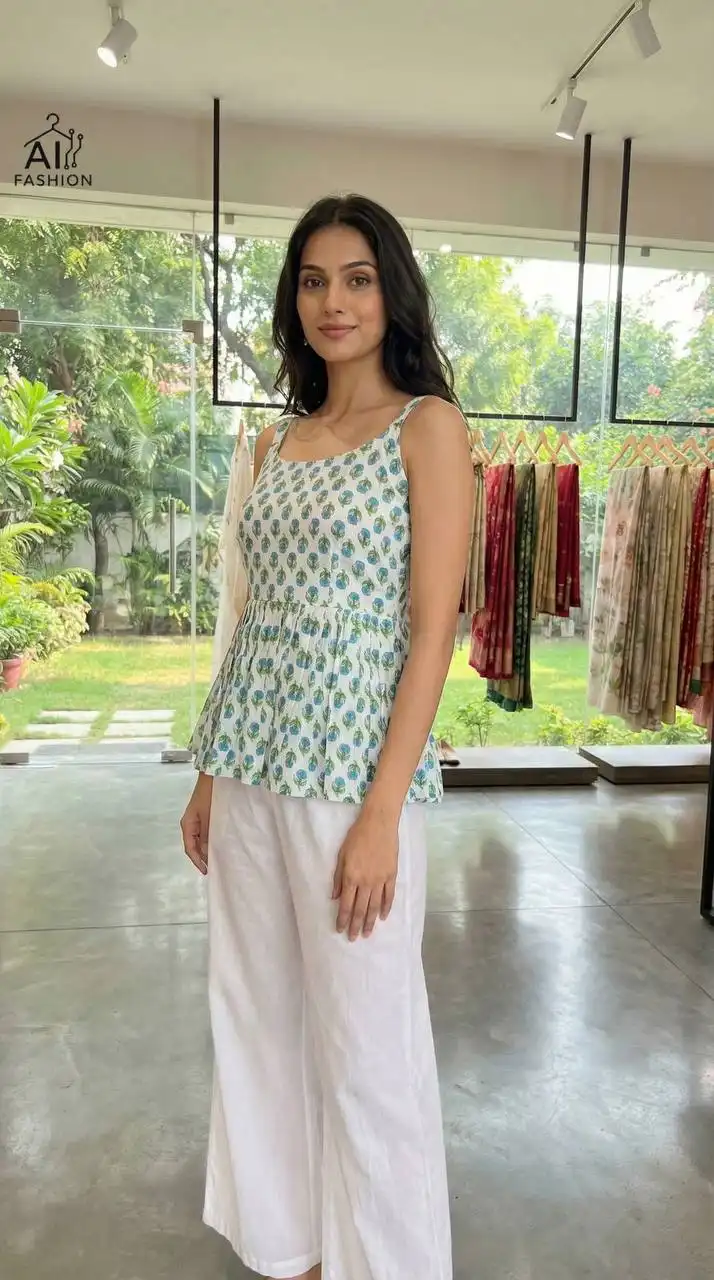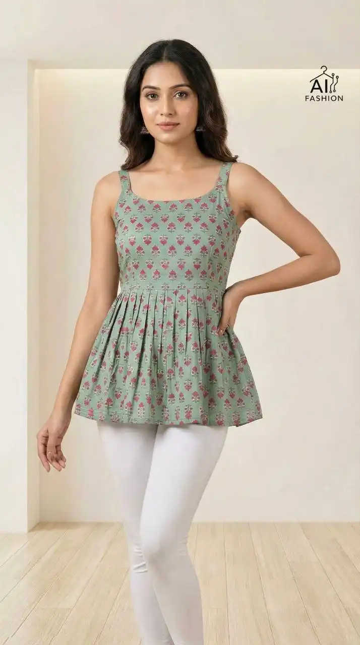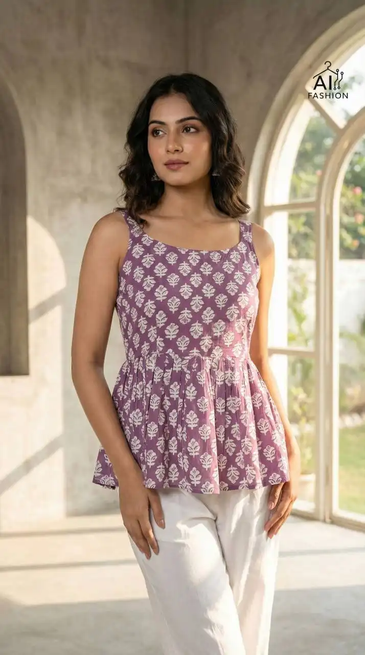 Top: Cotton Printed | Length: 26” | Backside Belt Attached