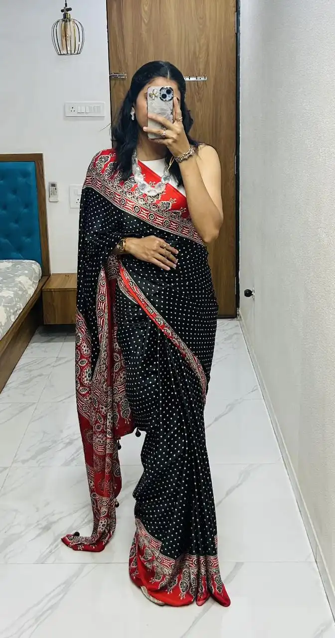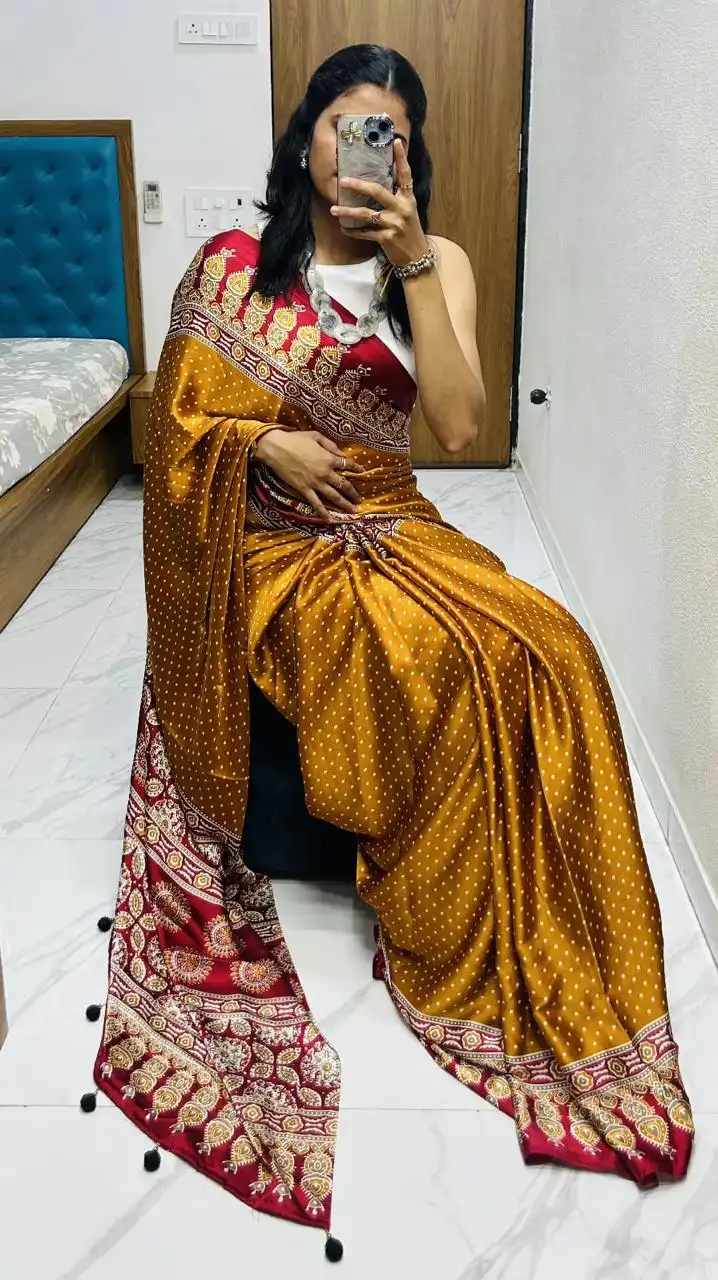 SS6077 Ajrakh Digital Print Semi Gaji Silk Saree Below 700 |