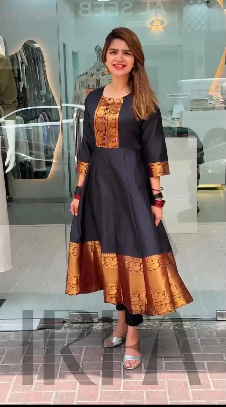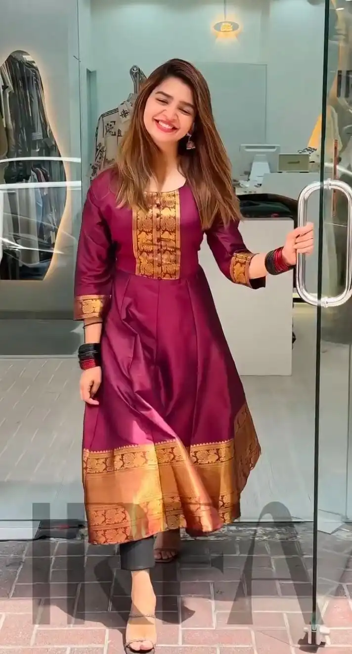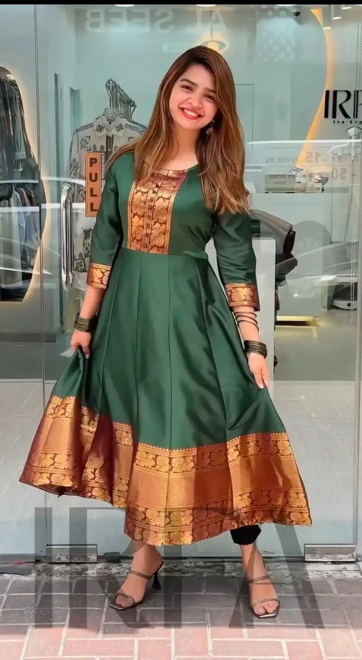 SS63 Zoya Silk Anarkali Gown With Weaving Jacquard Border