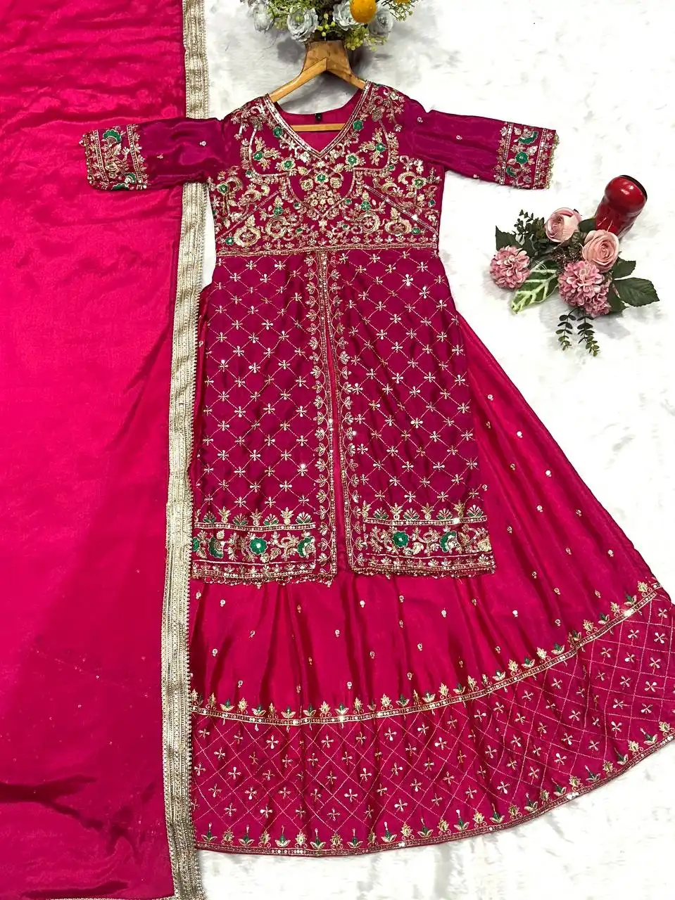 | Dupatta: | Chinon Silk with lass work and benglori green cover patta Length –2.30 |
