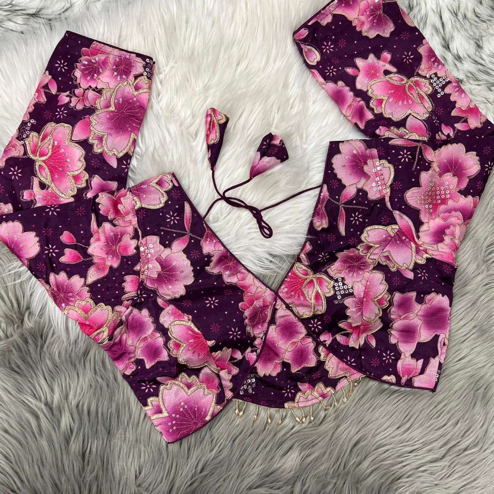 Sumshy Long Sleeve Embroidery Chinon Silk Readymade Blouse