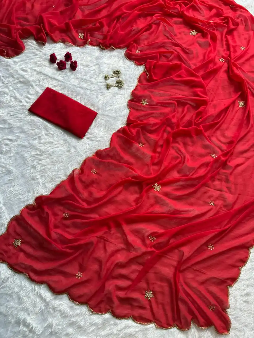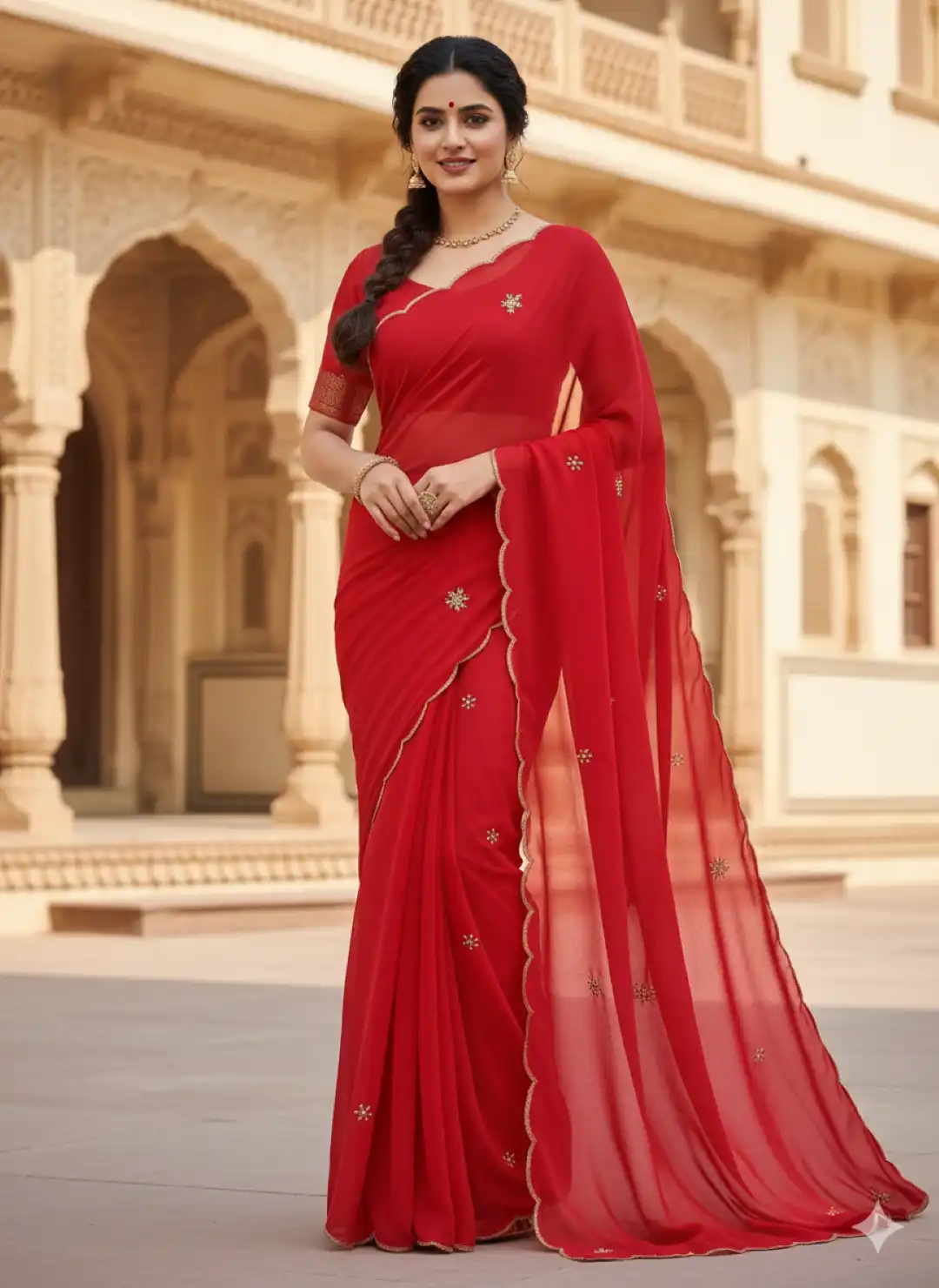 Saree: | Pure Faux Georgette saree with Beads, Sequins and katdana Handwork |