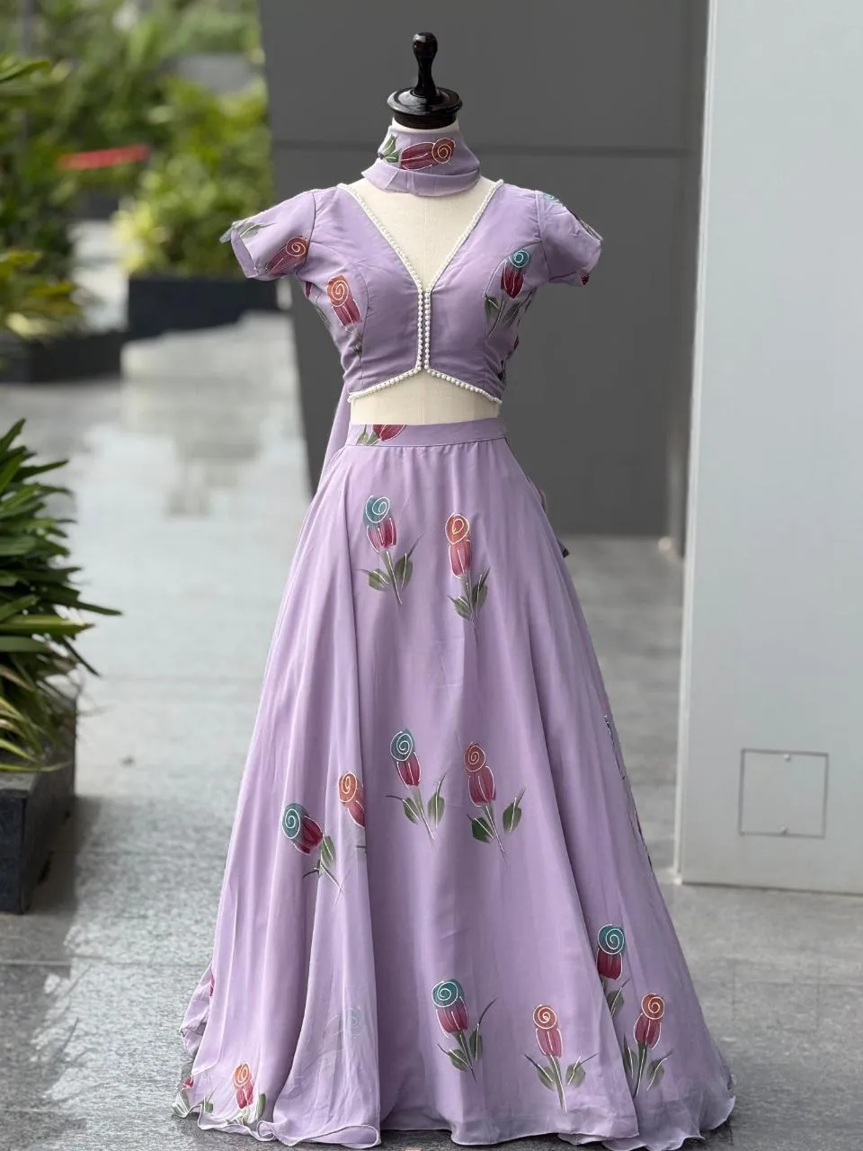 SWT 1186 Pure Georgette Painted Festival Lehenga Choli