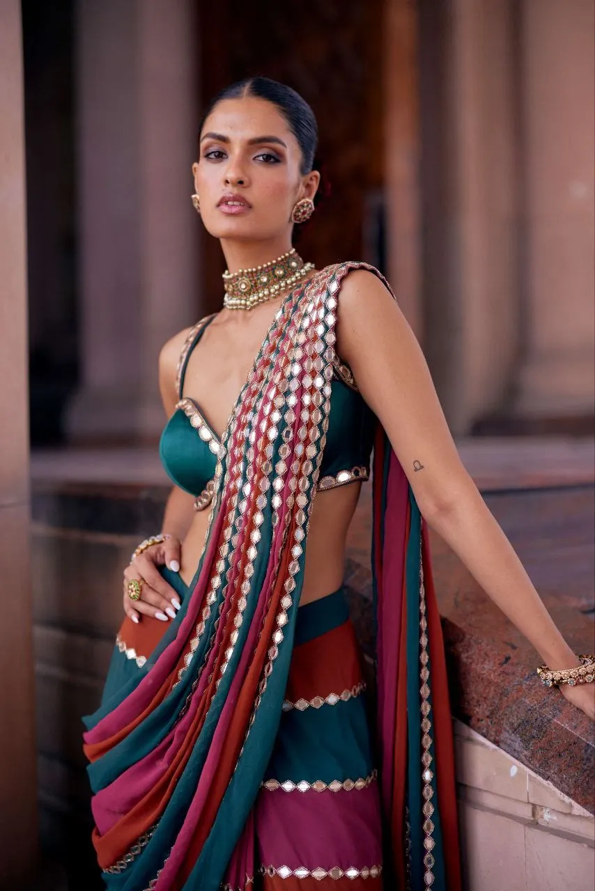 | Saree | Faux Georgette Patta Print lining, Embrodery Coading Lace with Original Mirror Work done in Saree, 4.4 MTR WORK IN SAREE |