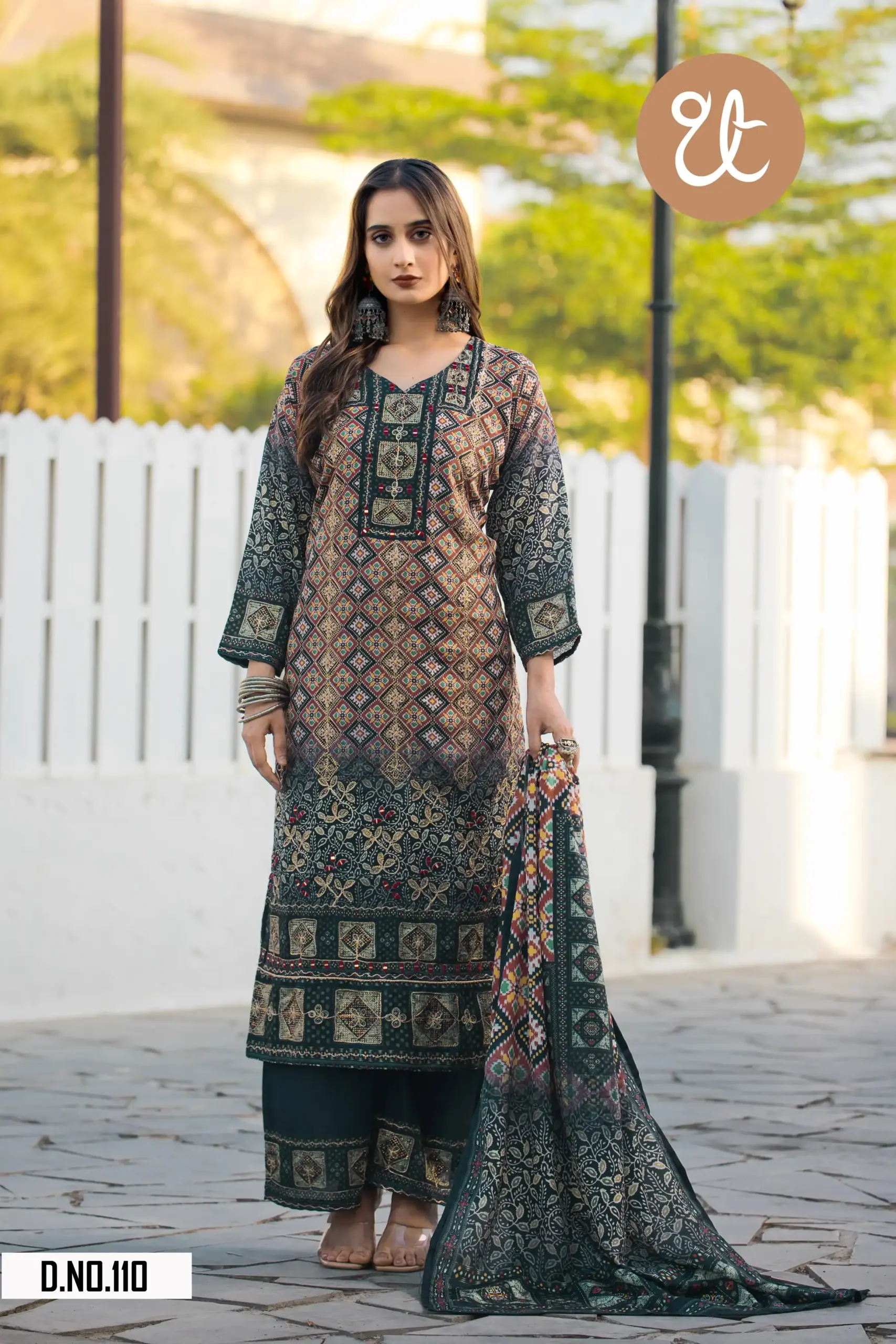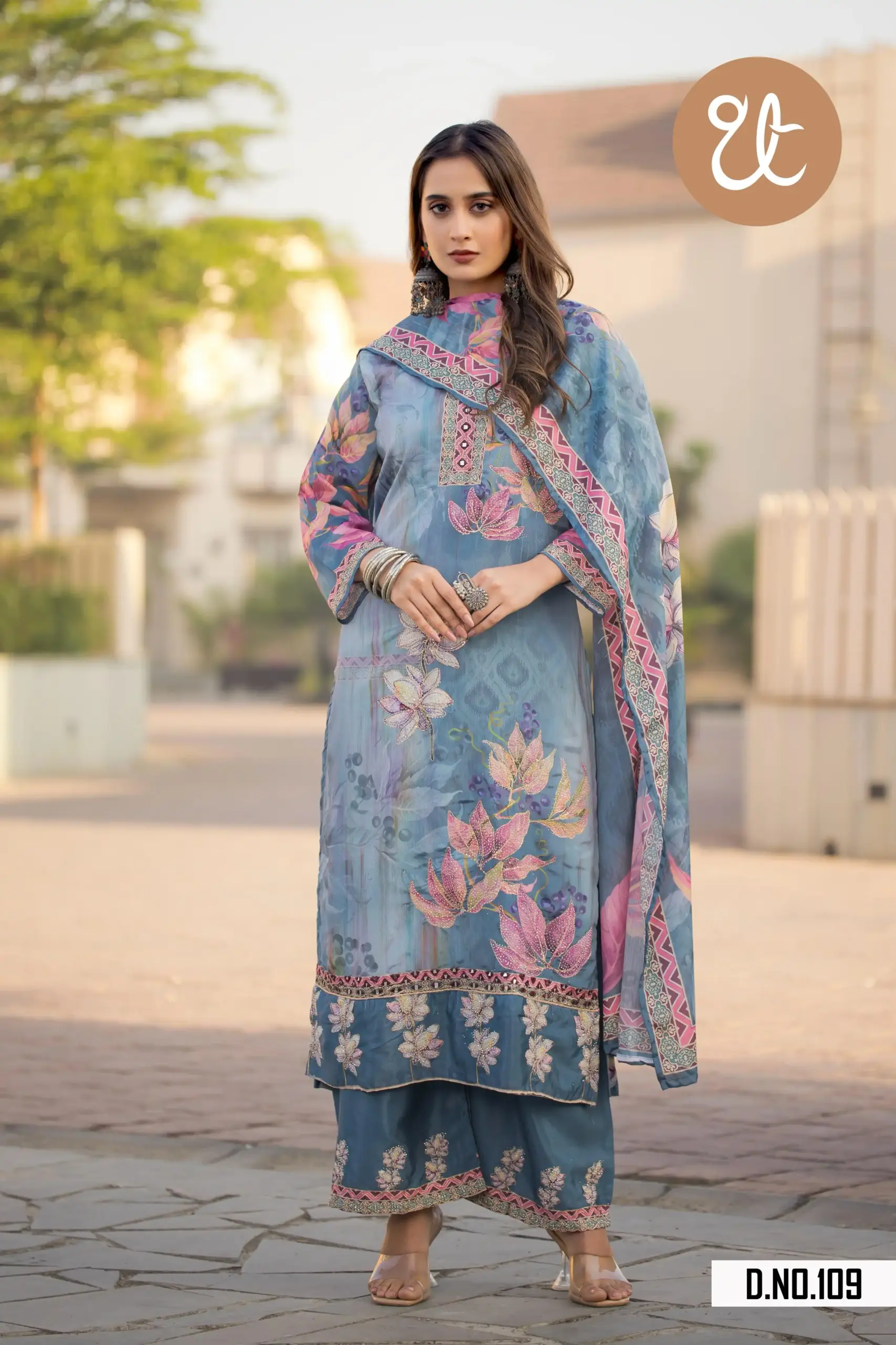 Bottom:Heavy Soft Chinon With Digital Print And Handwork | Length : 40 Inch.
