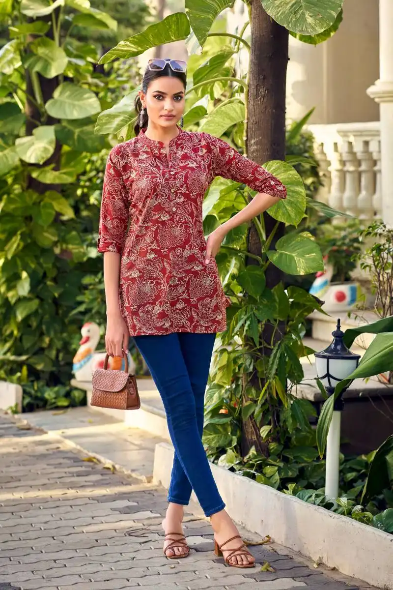 Discover everyday elegance with Cotton Shorties Vol 8 by Tips And Tops – crafted in soft cotton with foil prints and stylish 3/4th sleeves. A must-have for casual comfort and chic style!