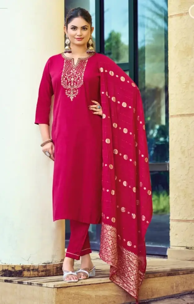Bottom: | Premium Roman Silk Work :- Heavy Embroidery Work With Pant Pocket |