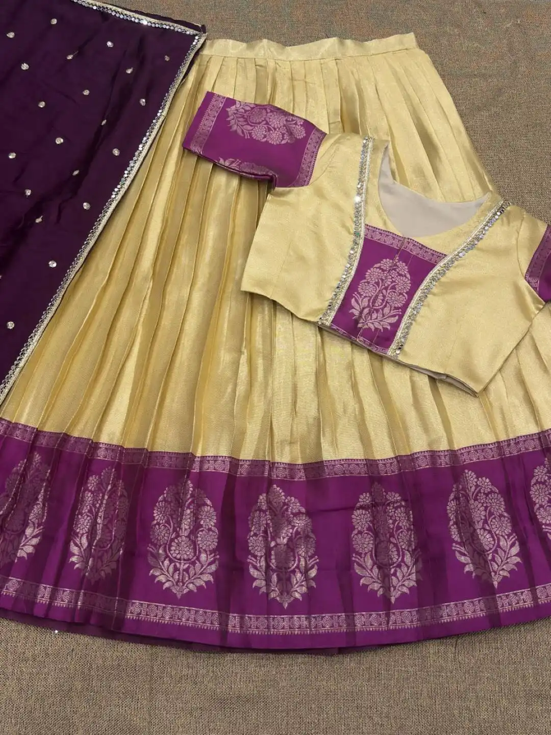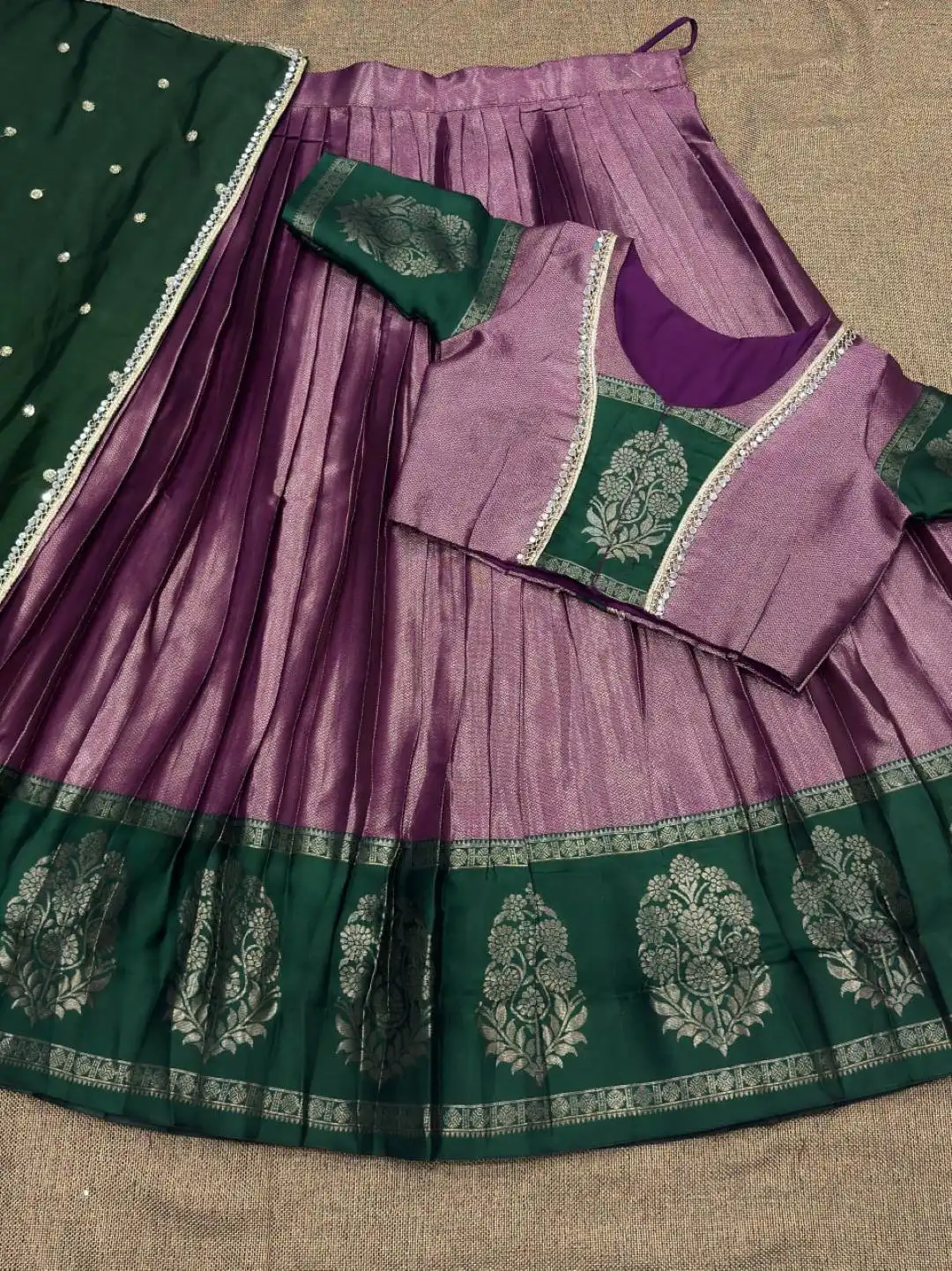 | Lehenga: | Kanjivaram Silk Work : Zari Weaving Work Waist : SUPPORTED UP TO 42 Closer : Drawstring With Zip Stitching : Stitch With Canvas Length : 41 Flair : 3.00 Meter Inner : Micro Cotton (Stitched) |