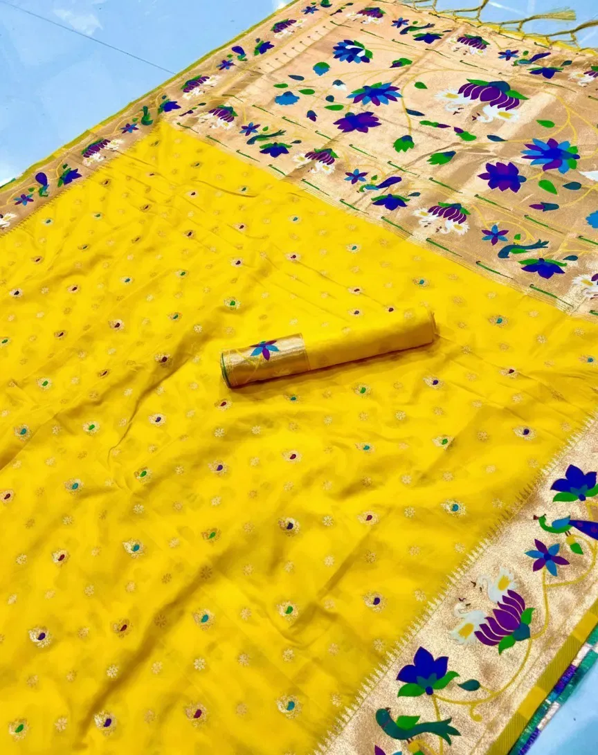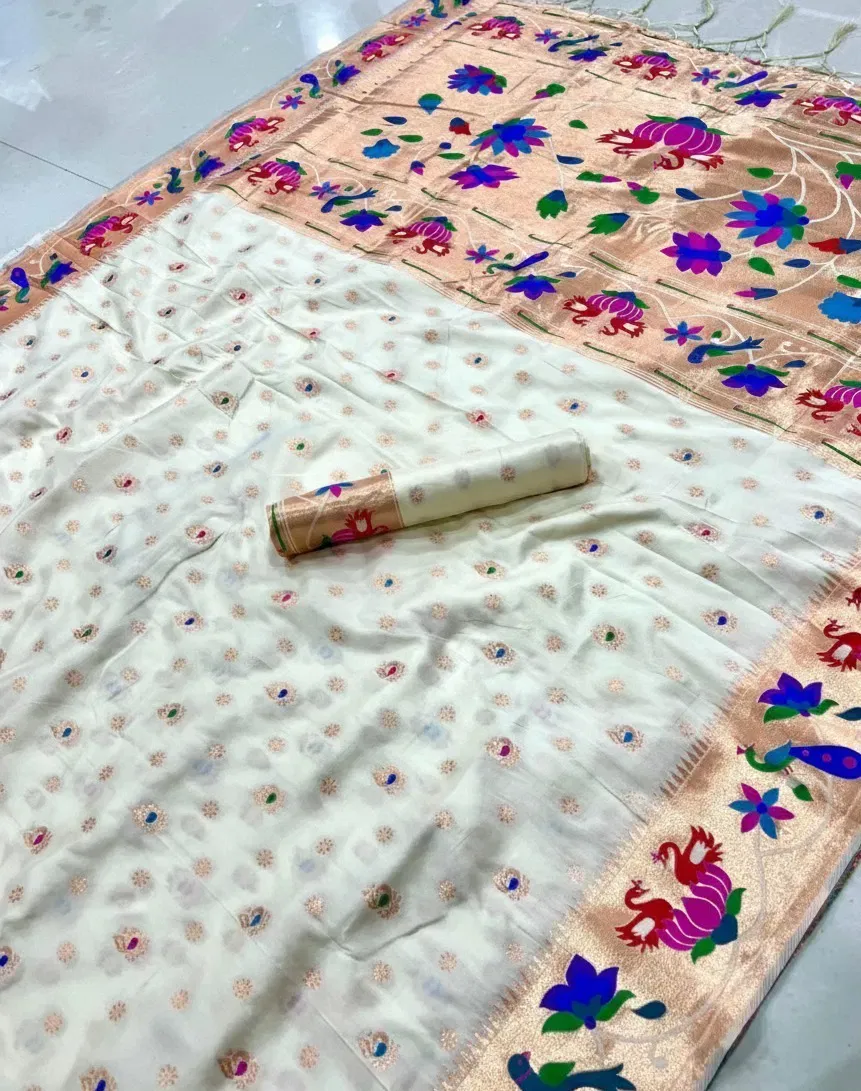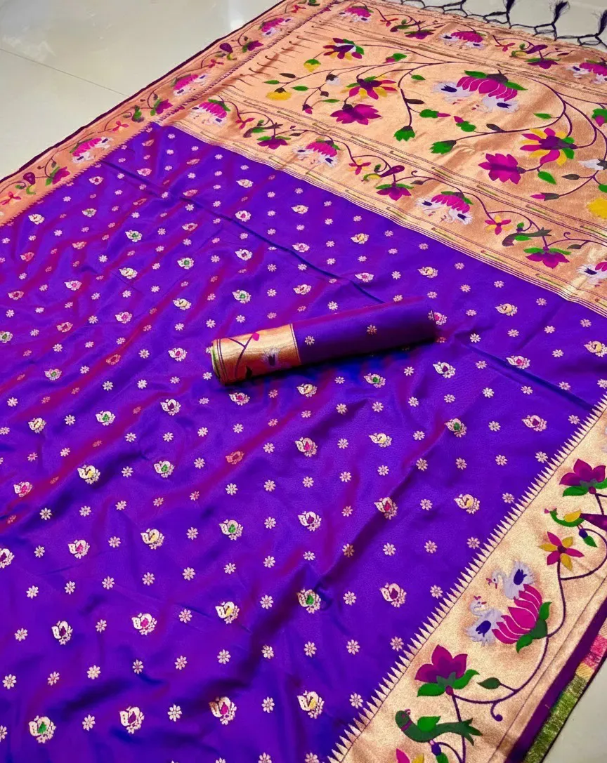Saree Pure Soft Kanchivram Paithani Silk Original Pure Zari Weaving and Minakari Peacock Border Heavy Mina Zari Weaving Pallu