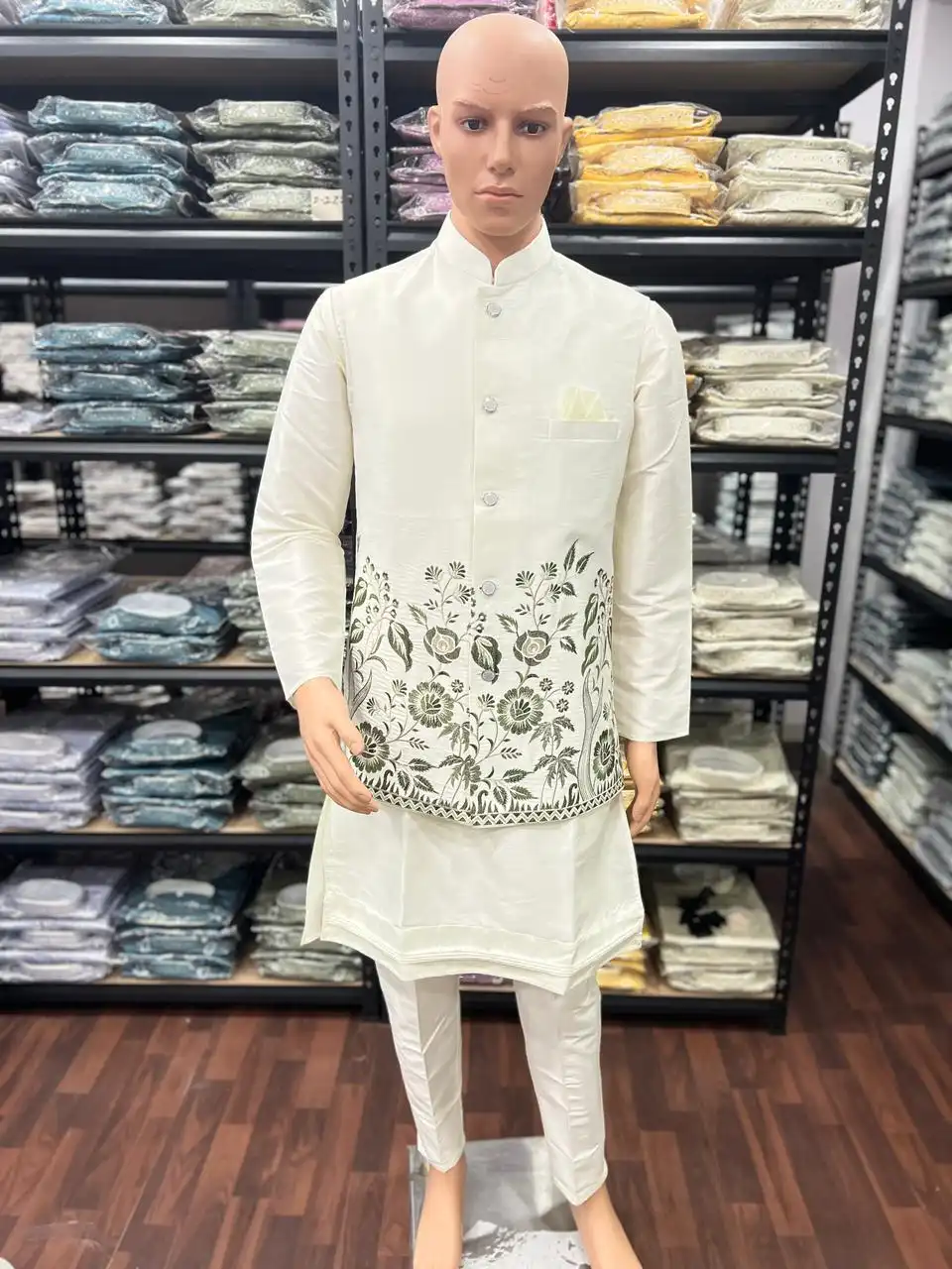 VTR 08 Wedding Embroidered Koti Kurta Pant Set for Men in Heavy Silk