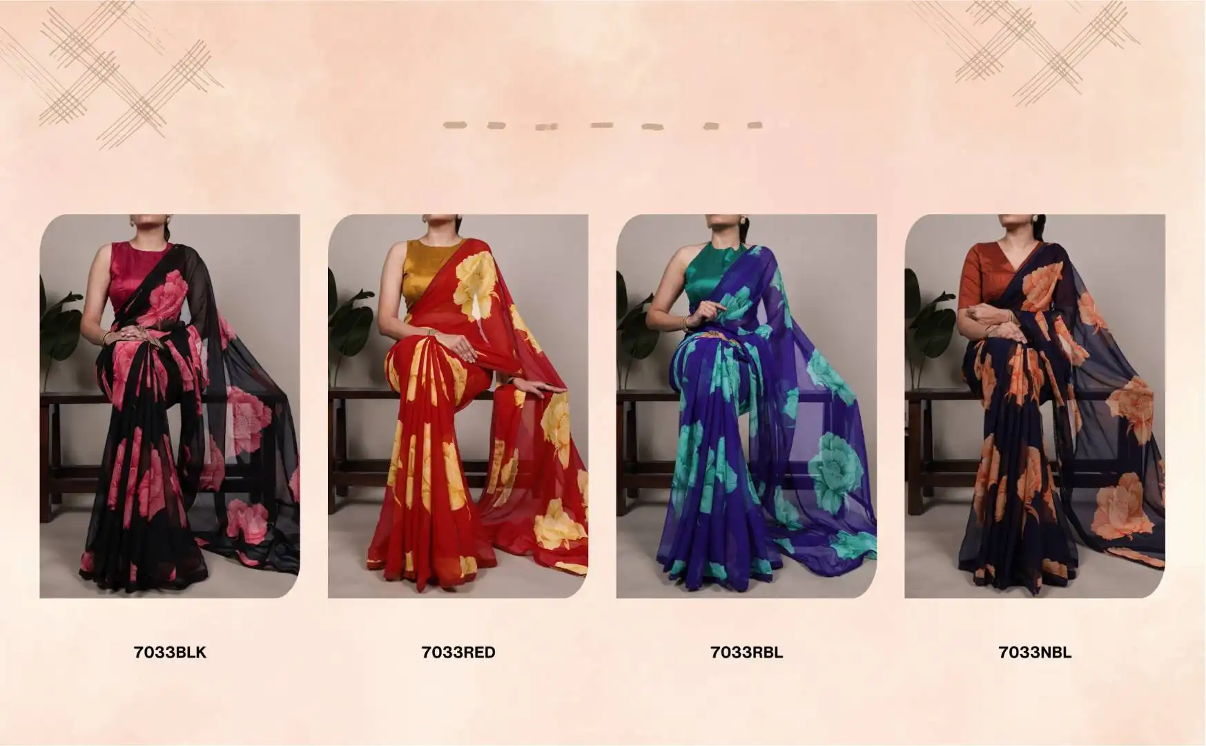 WMN 7033 Chiffon Floral Printed Saree Collection