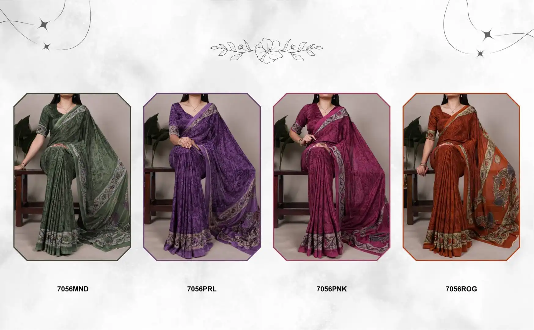WMN 7056 Crepe Printed Saree Collection Below 700