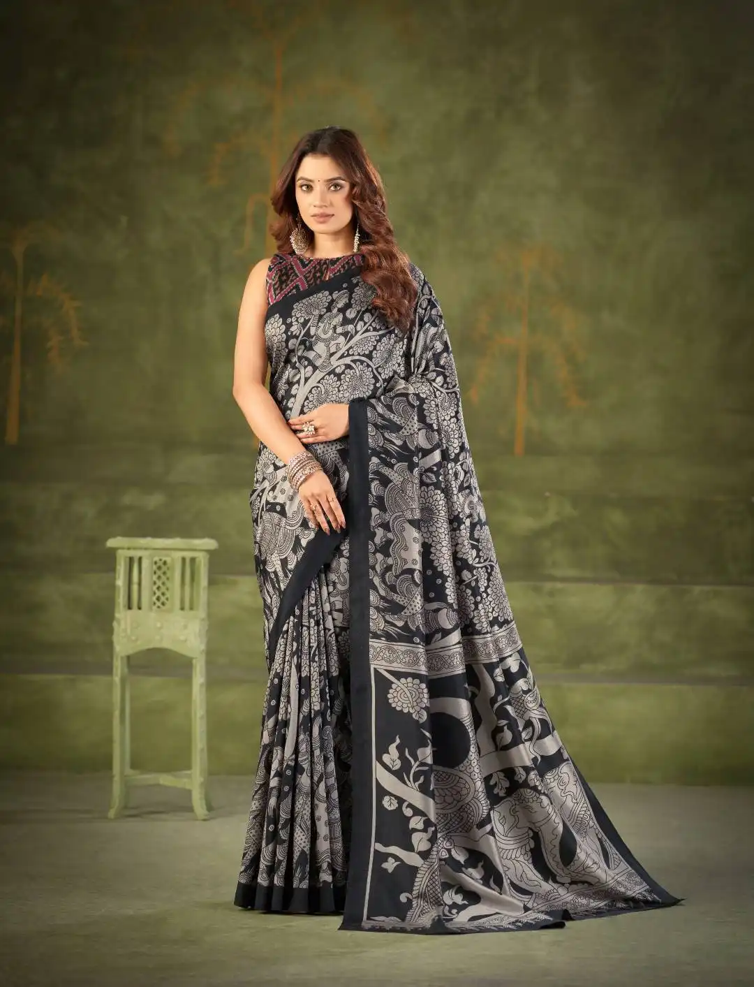 Catalog: WMN 7301 Tasar Silk Kalamkari Printed Saree Wholesale Market