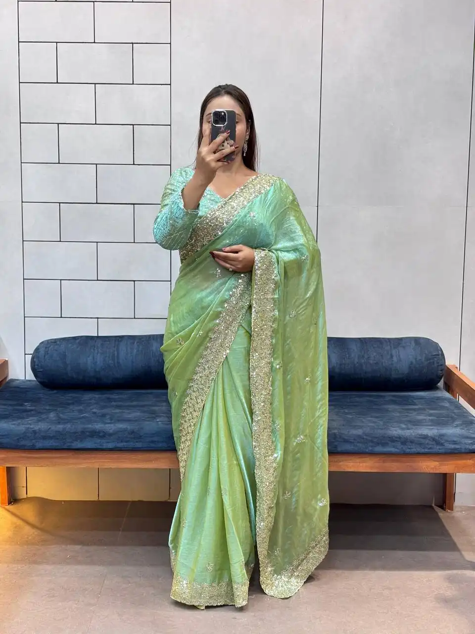 Saree:TWO TONE SPACE SILK MOSE | RICH EMBROIDERY SEQUNCE PANEL | WORK WITH RICH SEQUNCE WORK | CUT 6.30