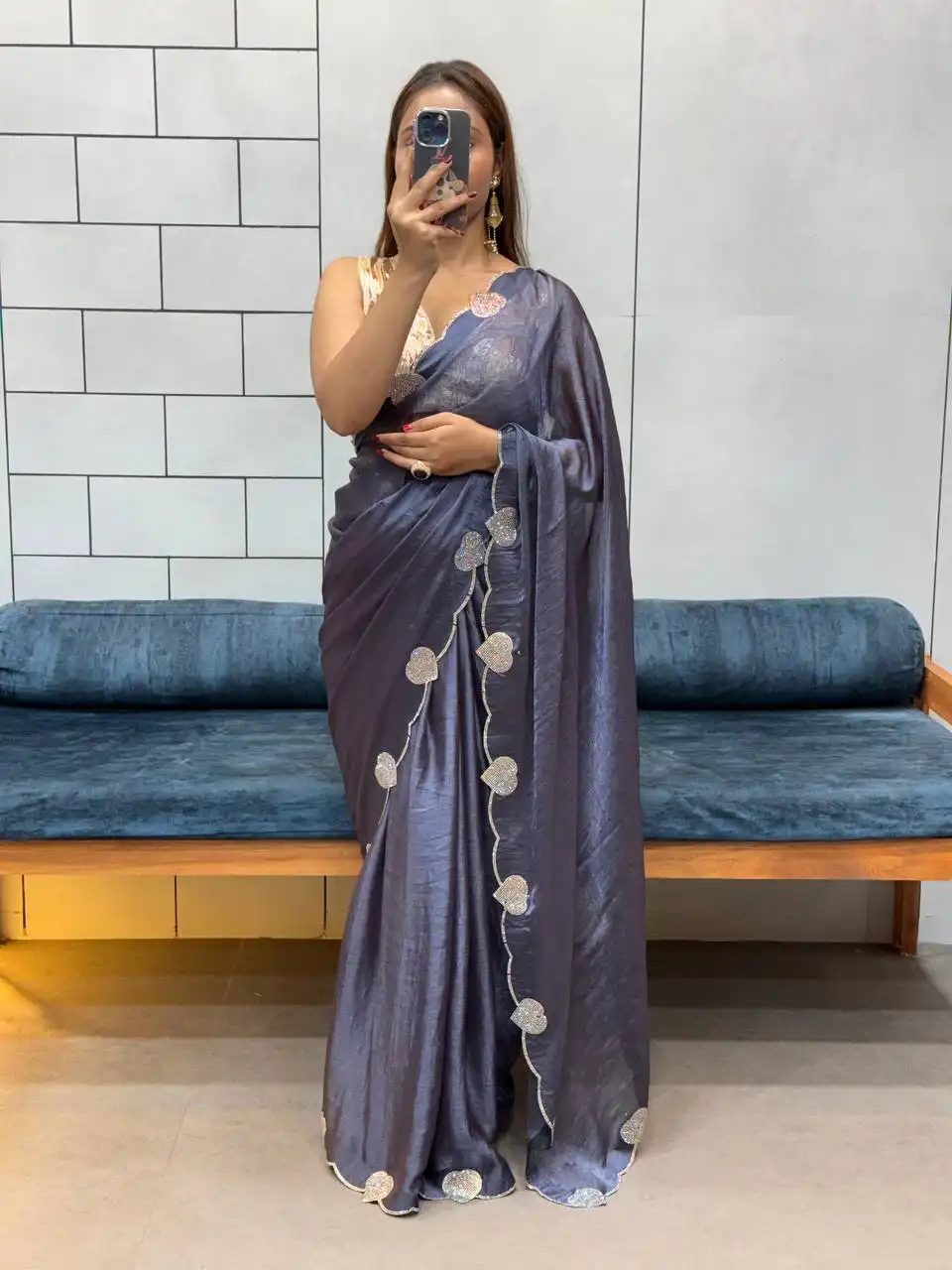 Saree: | SOFT DUSTY RANGE SPACE SILK | DIMAOND LOVING HART CUT WORK PANEL ALONG | CUT 6.30 |
