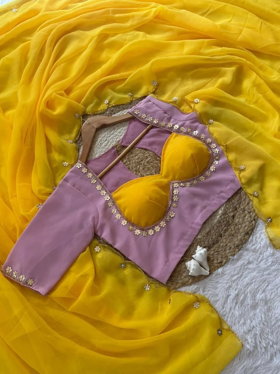 Saree Faux Georgette With handwork Saree Border, Work-Handwork Khatali cutdana With Moti & Small Flower Work Border In Saree
