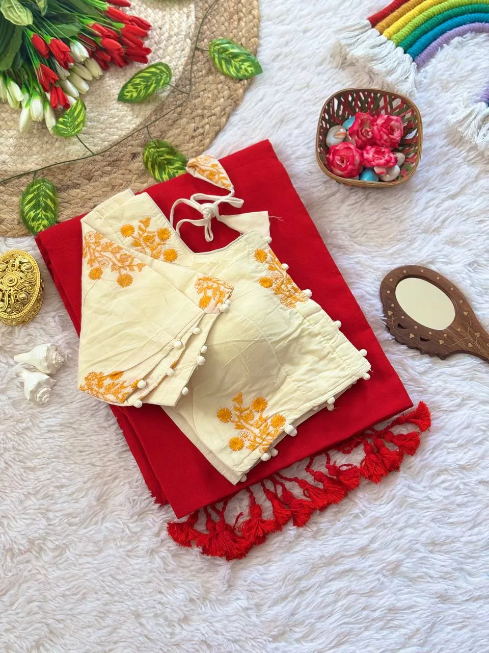 | Blouse | HEAVY KORA COTTON WITH RICH EMBRODERY MULTI STANDARD WORK WITH RICH EMBRODERY DESIGNE, SIZE- ALTERNATE CAN BE 38 TO 42 MARGINE |