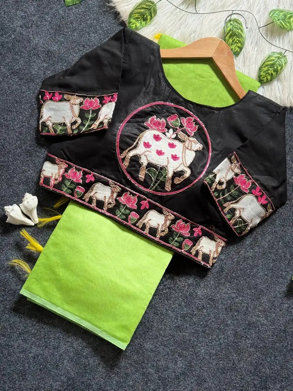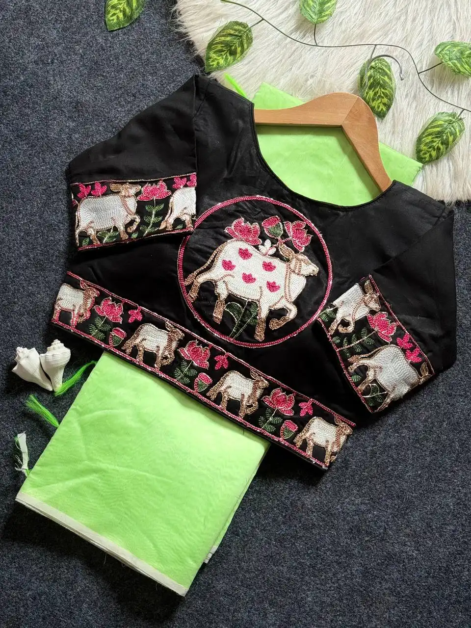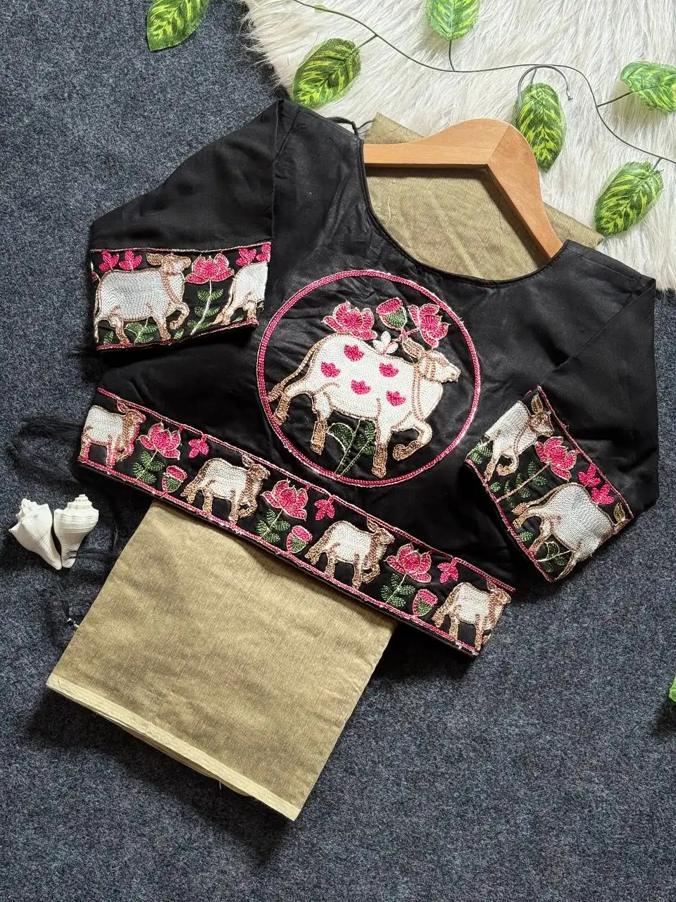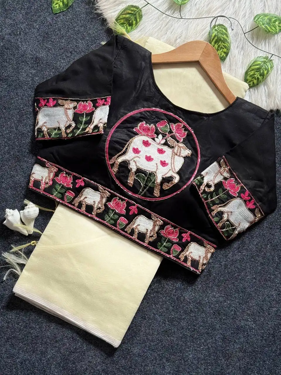 | Blouse: | HEVY KORA COTTON WITH RICH EMBRODERY CUTDANA WORK COW WORK WITH RICH DESIGNE SIZE :-ALTERNATE CAN BE 38 TO 42 MARGINE |