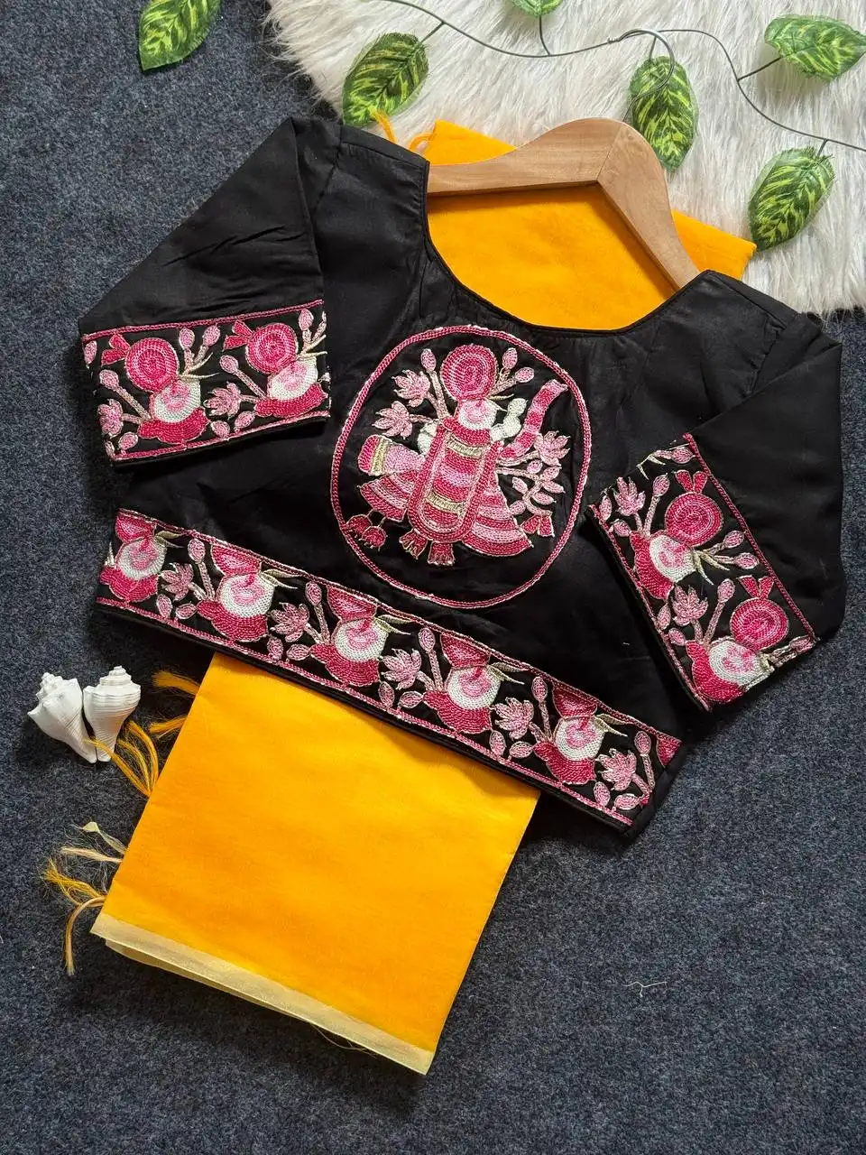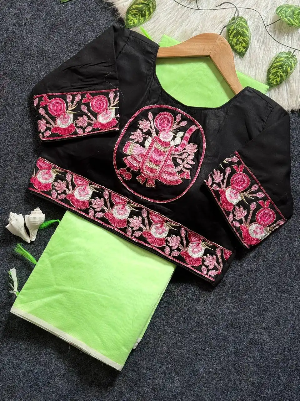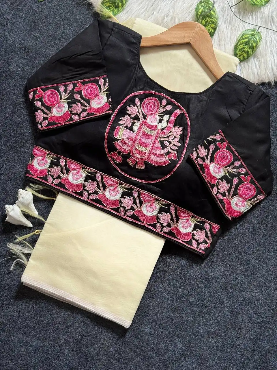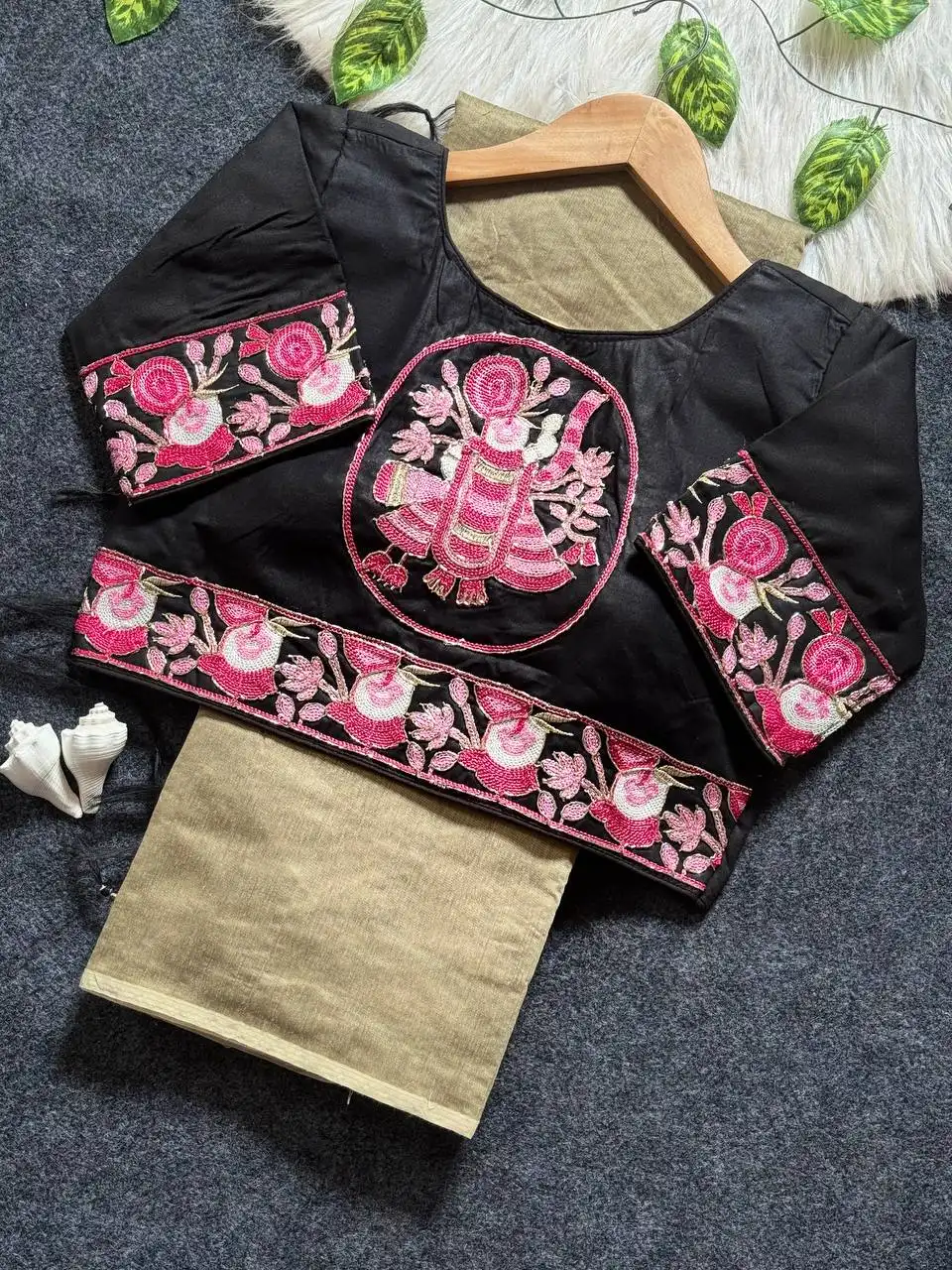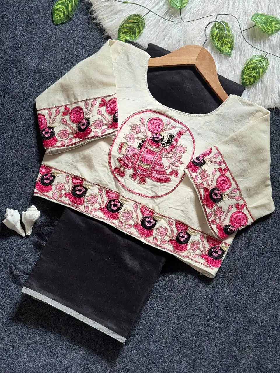 | Blouse: | HEVY KORA COTTON WITH RICH EMBRODERY CUTDANA WORK SHRINATHJI WORK WITH RICH DESIGNE SIZE :-ALTERNATE CAN BE 38 TO 42 MARGINE |