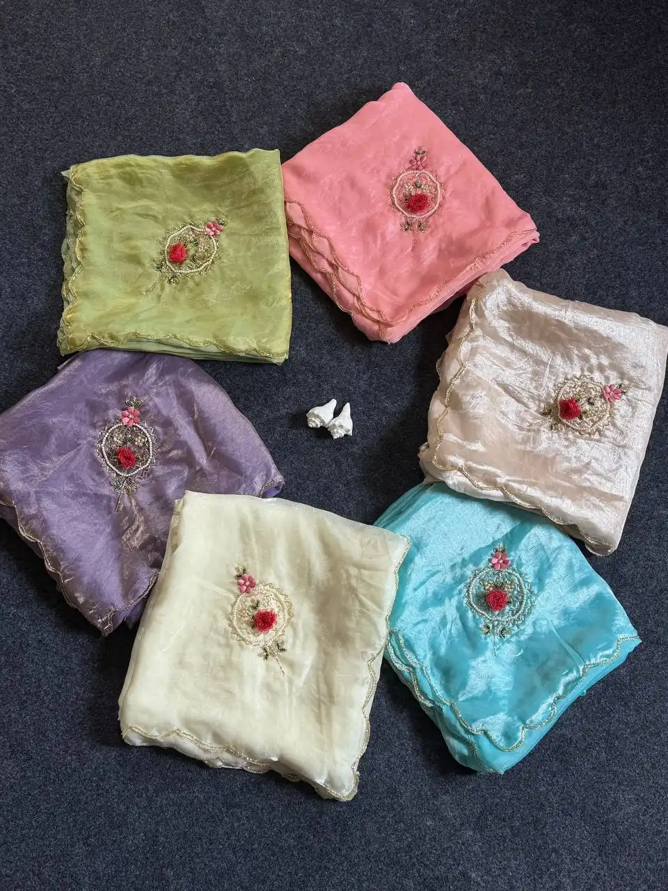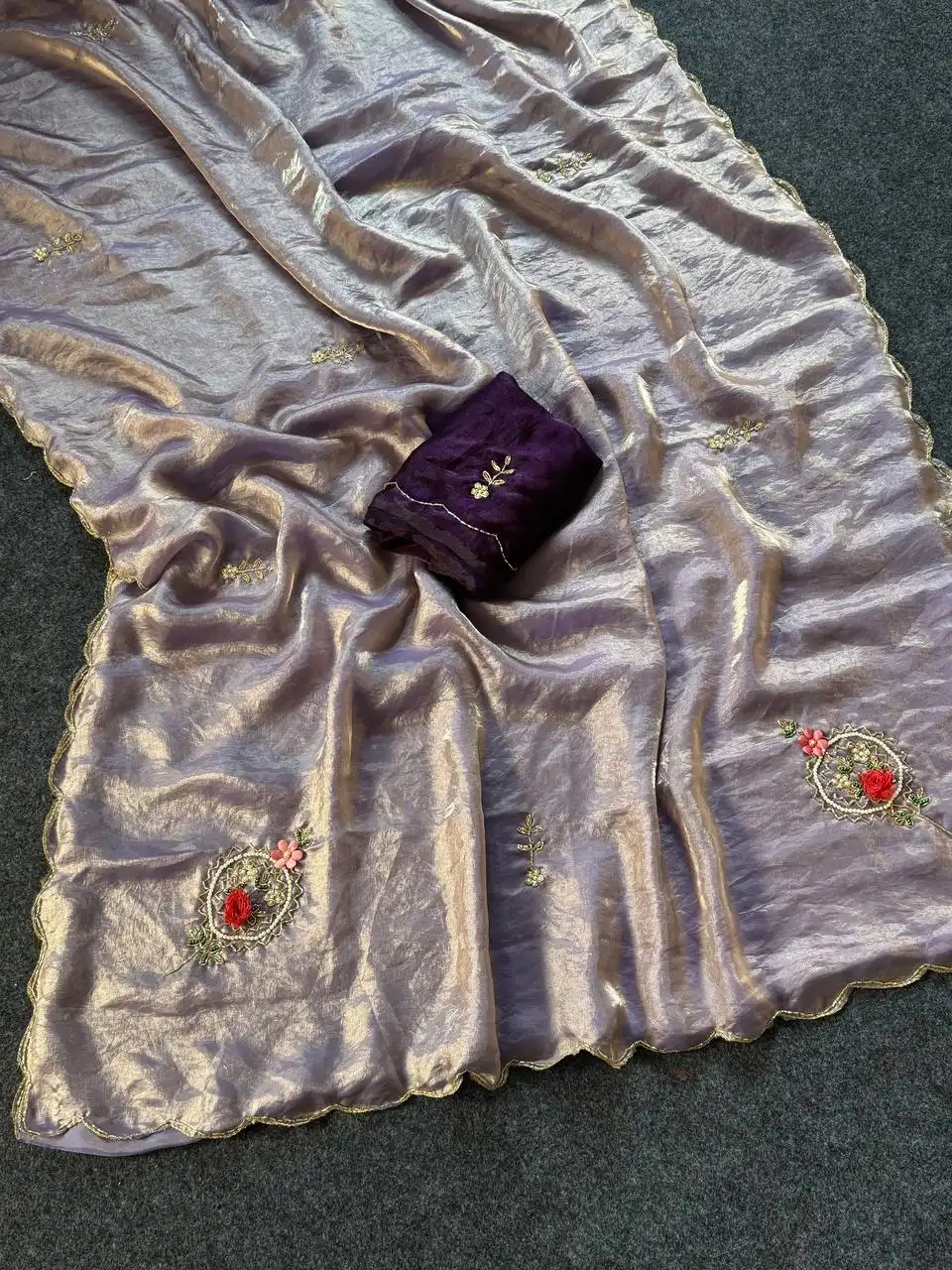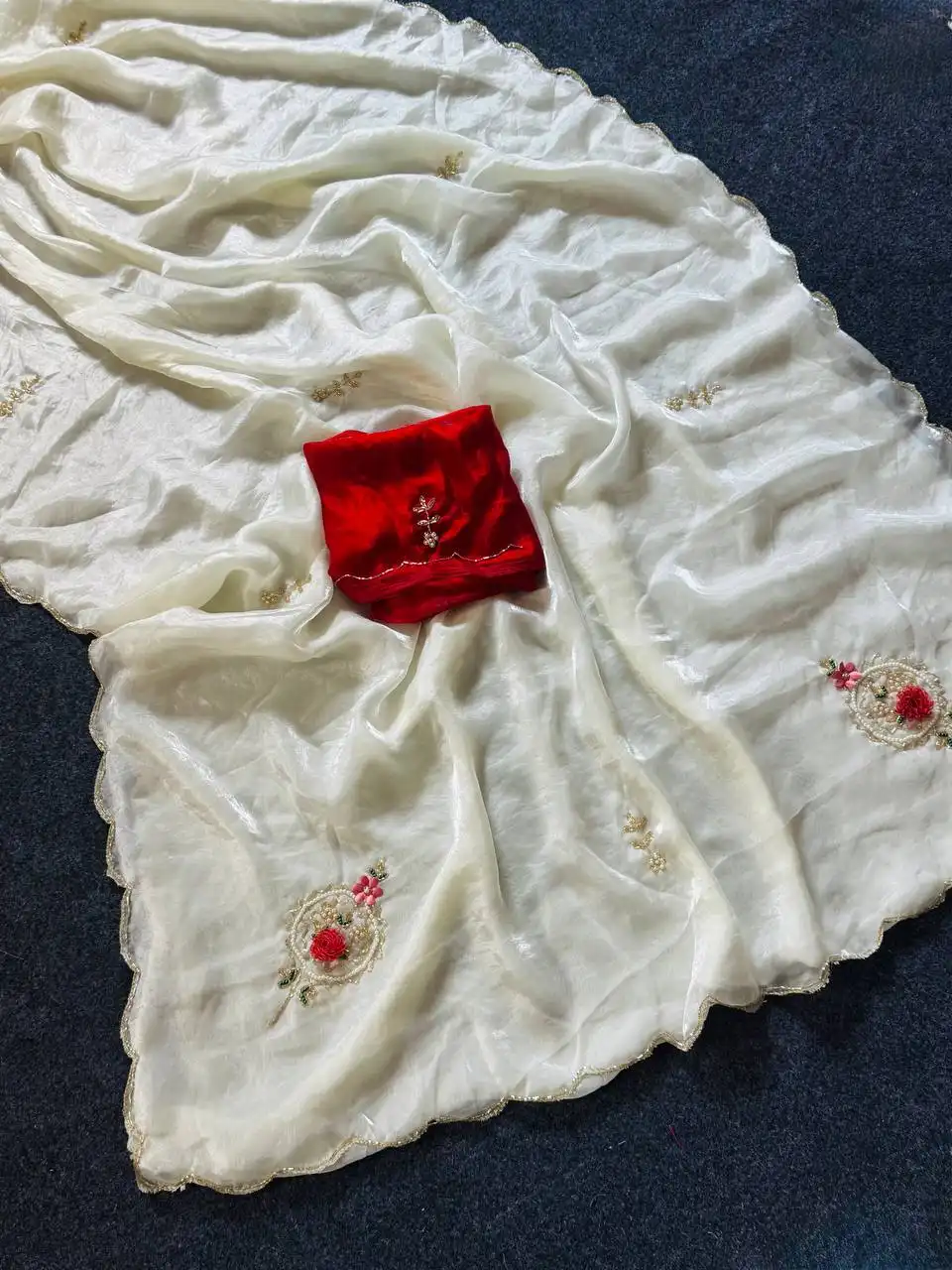 | Blouse: | CONTRAST WITH SLEEVE BUTTI HANDWORK |