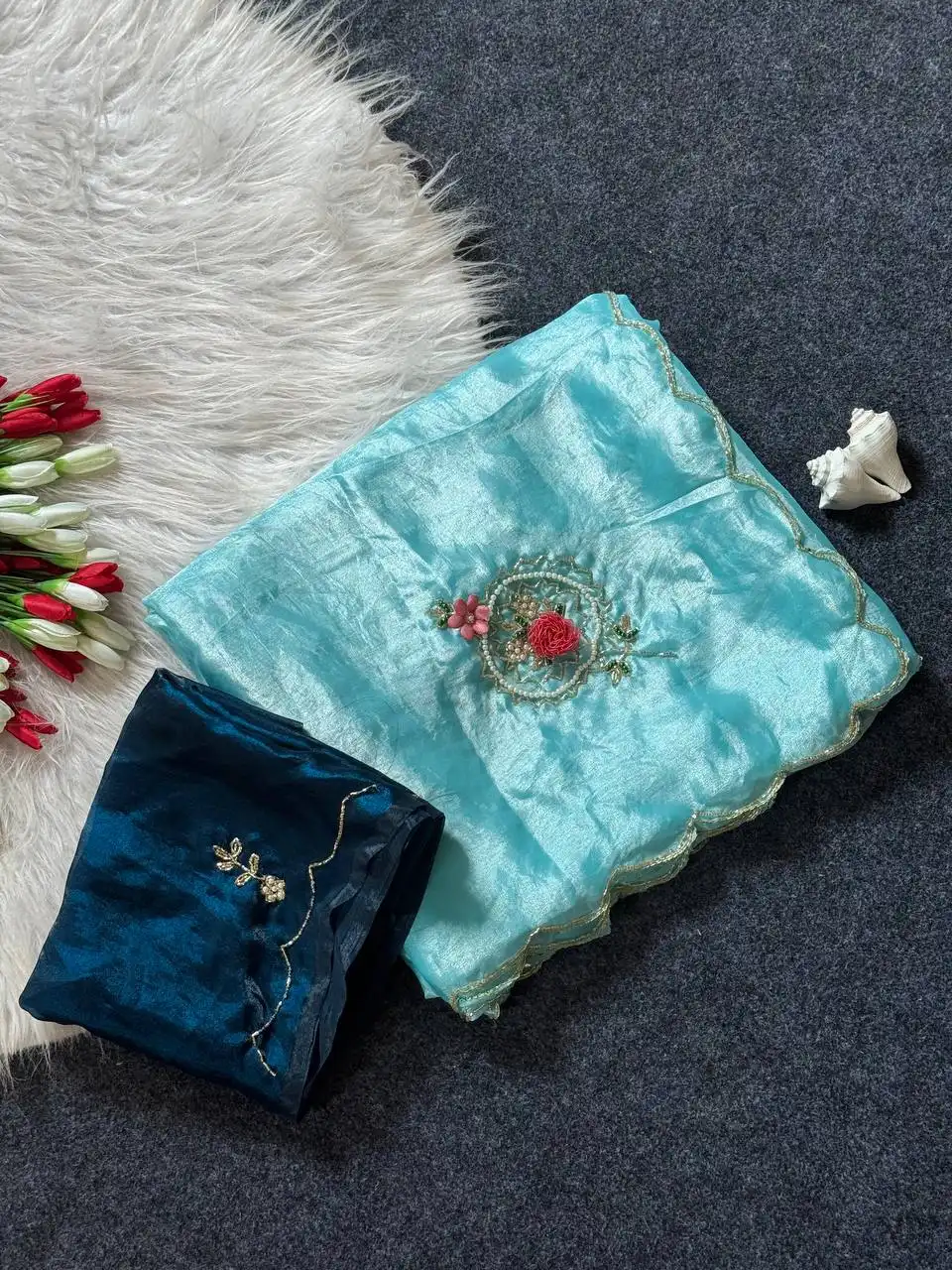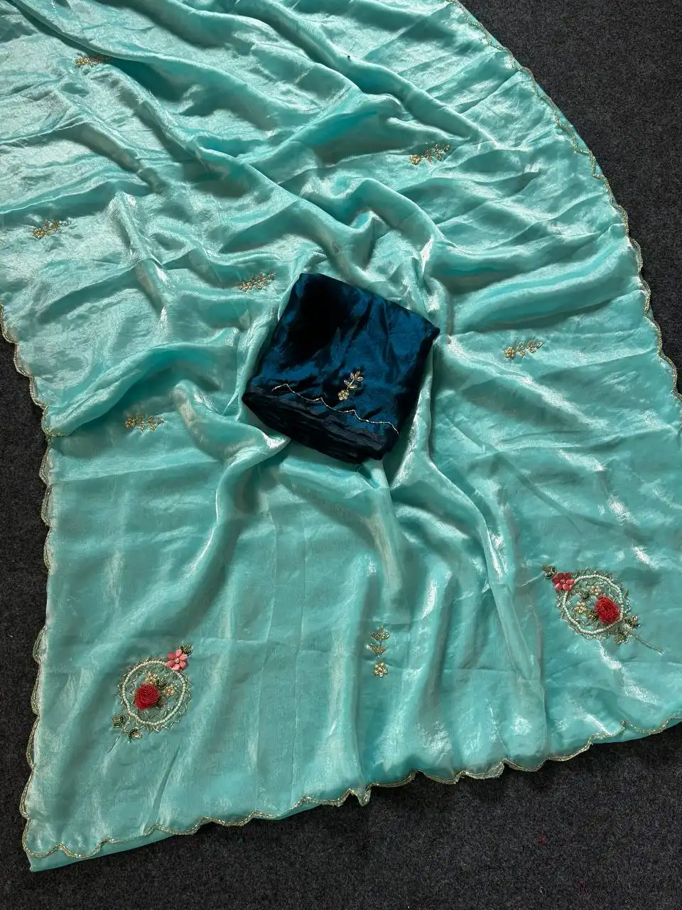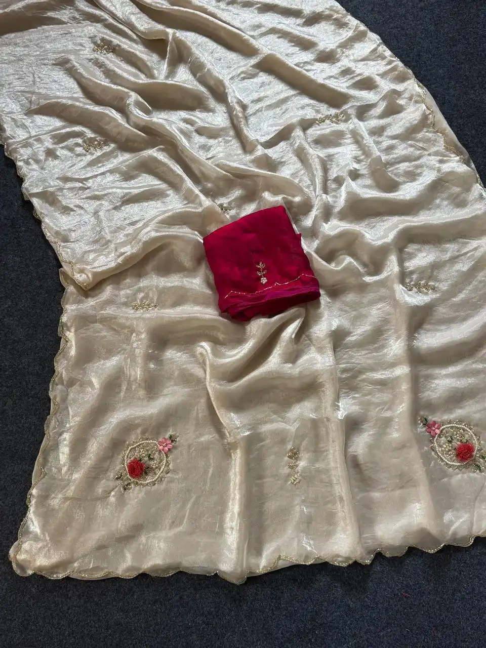 | Saree: | FANDY SARTIN WITH KHATALI HANDWORK WORK BUTTA MOTI CUTDANA AND FLOWER BUTTA WORK & BORDER FULL ARCO HANDWORK AND BODY BUTTI WORK |