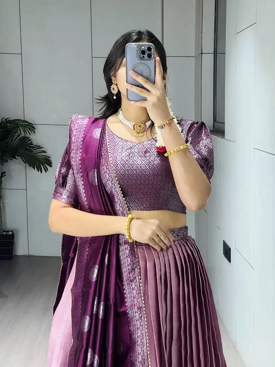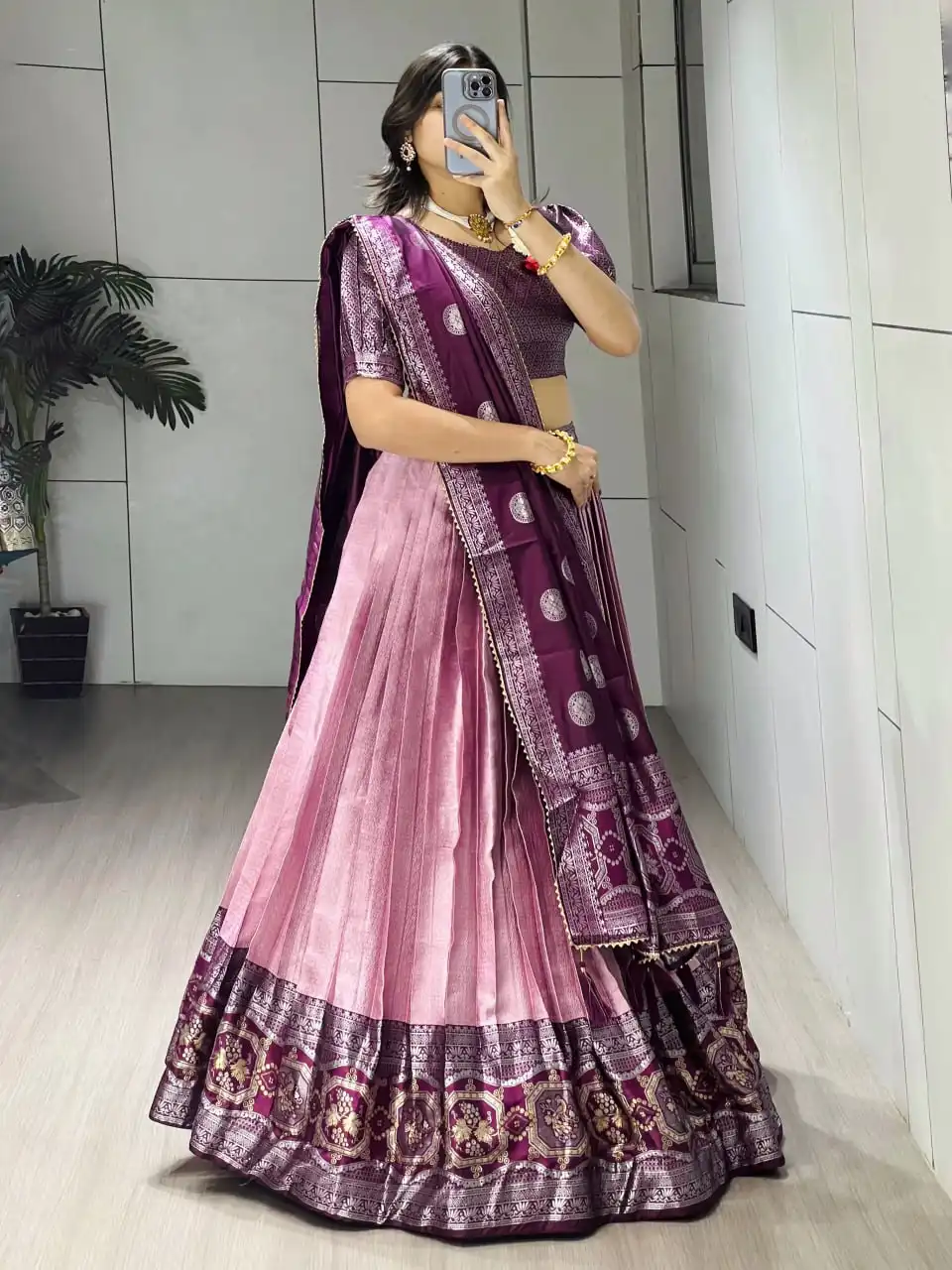 WMT 8132 Silk Golden Zari Weaving Traditional Lehenga Choli |