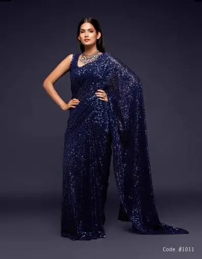 Saree: | Georgette | Thread and Multiple Sequins Embroidery |