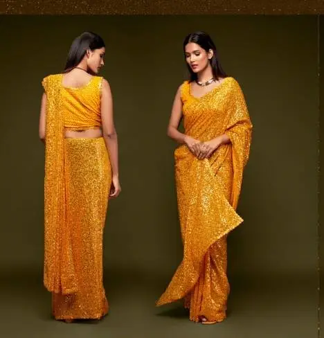 Saree: | Georgette | Thread and Multiple Sequins Embroidery |