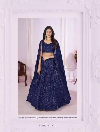 Lehenga: | Georgette Work : Sequins Thread Embroidery Work Size: up to 44″ (Unstitched) |