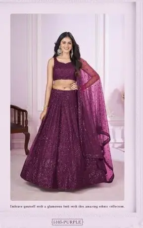 Lehenga: | Soft Net Work : Sequins Thread Embroidery Work Size: up to 44″ (Unstitched) |