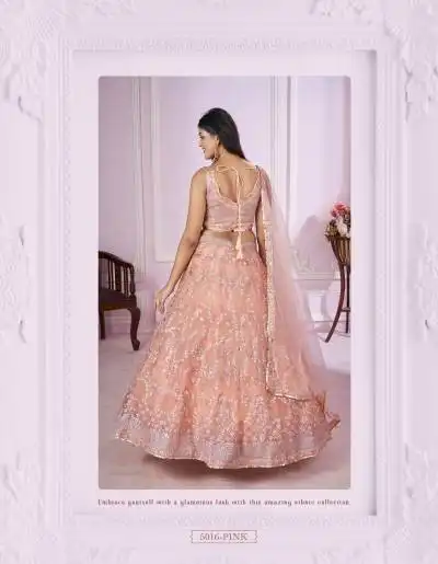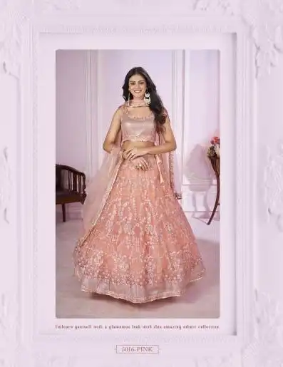 Lehenga: | Soft Net Work : Sequins Thread Zari Embroidery Work Size: up to 44″ (Unstitched) |