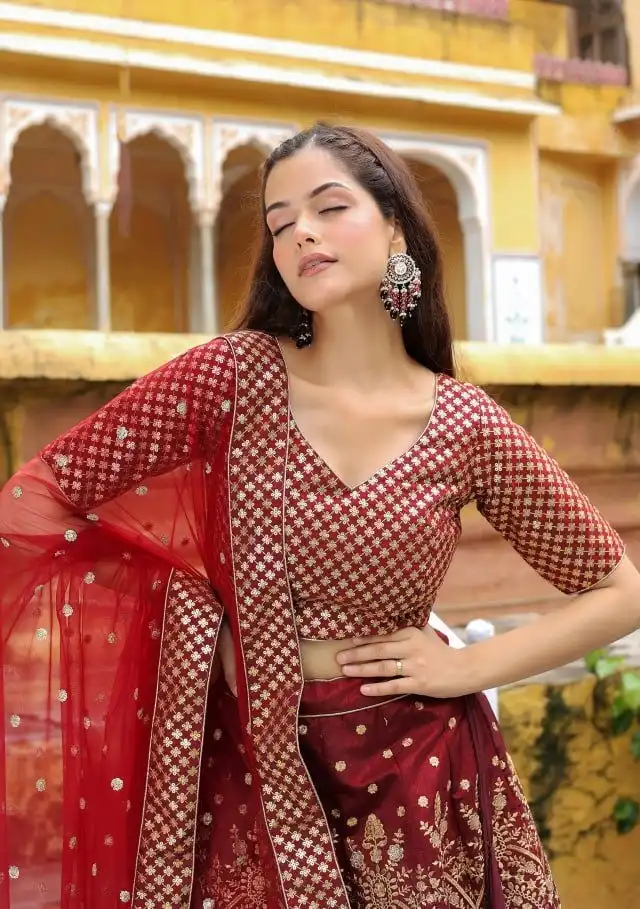 Catalog: | Zeel Vol 17409 Maroon Raw Silk Designer Wedding Lehenga Choli |