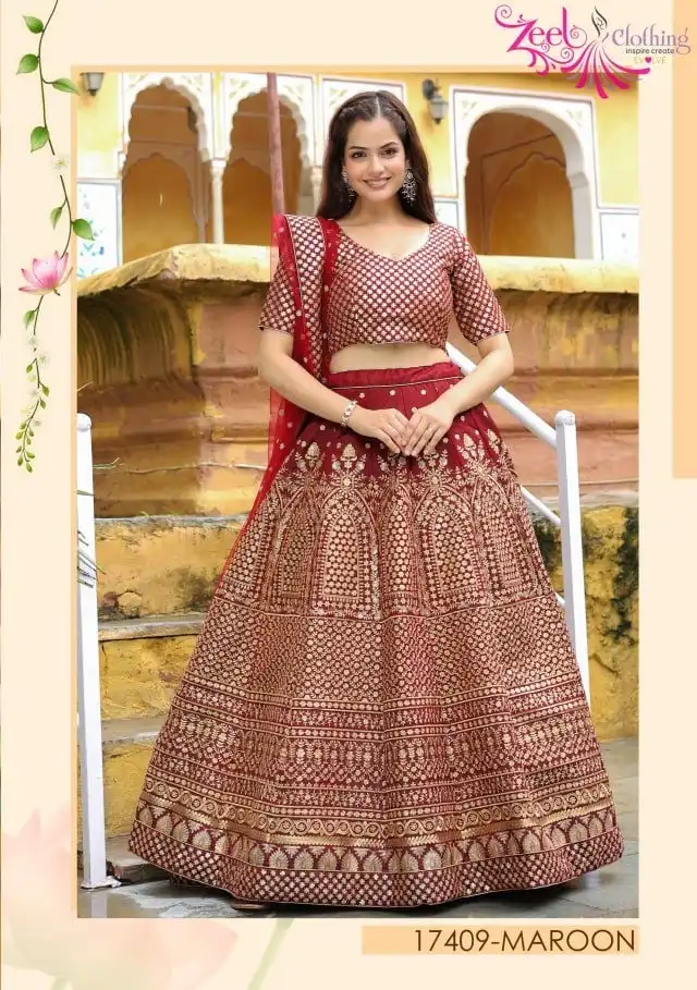 Zeel Vol 17409 Maroon Raw Silk Designer Wedding Lehenga Choli