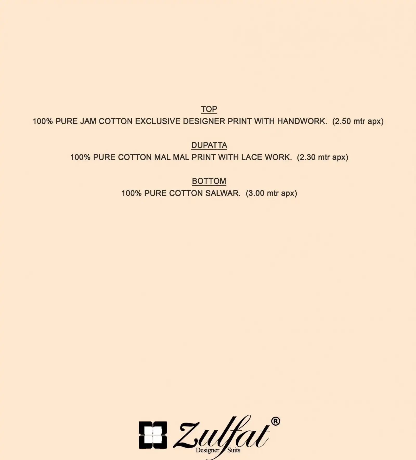 Zulfat Rawiya Jam Cotton Designer Dress Material Collection