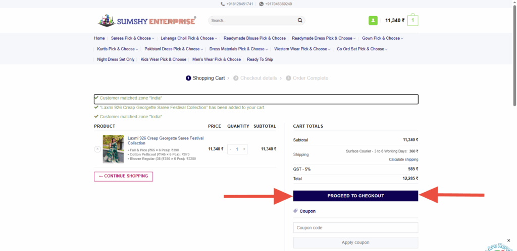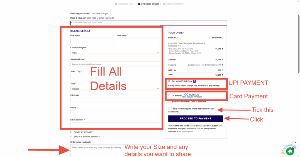 - On Checkout Page Fill All the Details Like Name, Address, Town/City, Pincode, Mobile, Email.