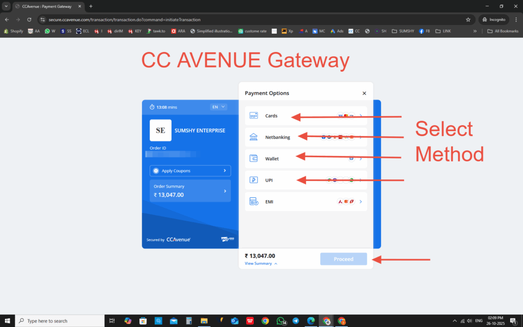 - Select Payment Method Like UPI & CCAvenue(Credit Cart Payment).